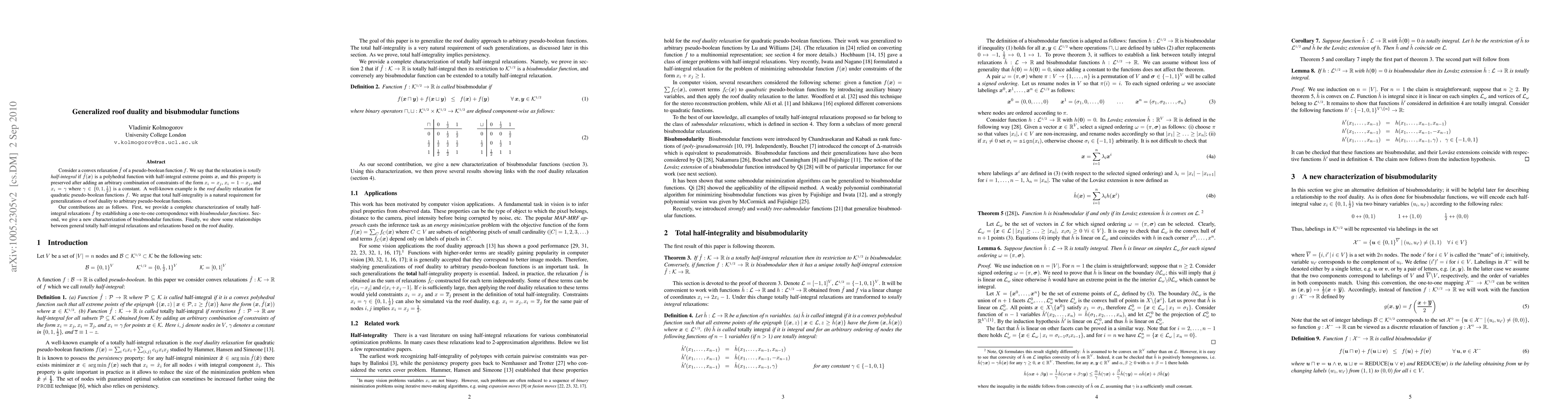 Consider a convex relaxation $\hat f$ of a pseudo-boolean function $f$. We say that the relaxation is {\em totally half-integral} if $\hat f(x)$ is a polyhedral function with half-integral extreme points $x$, and this property is preserved after adding an arbitrary combination of constraints of the form $x_i=x_j$, $x_i=1-x_j$, and $x_i=\gamma$ where $\gamma\in\{0, 1, 1/2}$ is a constant. A well-known example is the {\em roof duality} relaxation for quadratic pseudo-boolean functions $f$. We argue that total half-integrality is a natural requirement for generalizations of roof duality to arbitrary pseudo-boolean functions. Our contributions are as follows. First, we provide a complete characterization of totally half-integral relaxations $\hat f$ by establishing a one-to-one correspondence with {\em bisubmodular functions}. Second, we give a new characterization of bisubmodular functions. Finally, we show some relationships between general totally half-integral relaxations and relaxations based on the roof duality.