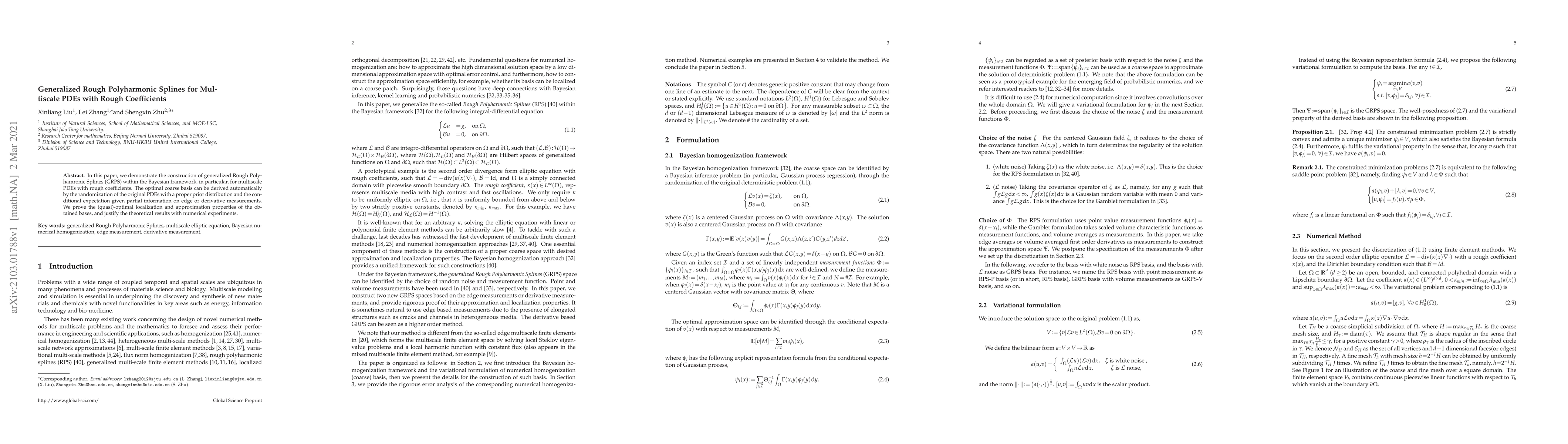 This paper constructs generalized Rough Polyharmonic Splines (GRPS) within a Bayesian framework for solving multiscale PDEs with rough coefficients. The method derives optimal coarse bases through randomization of PDEs with a proper prior, demonstrating quasi-optimal localization and approximation properties, validated by numerical experiments.