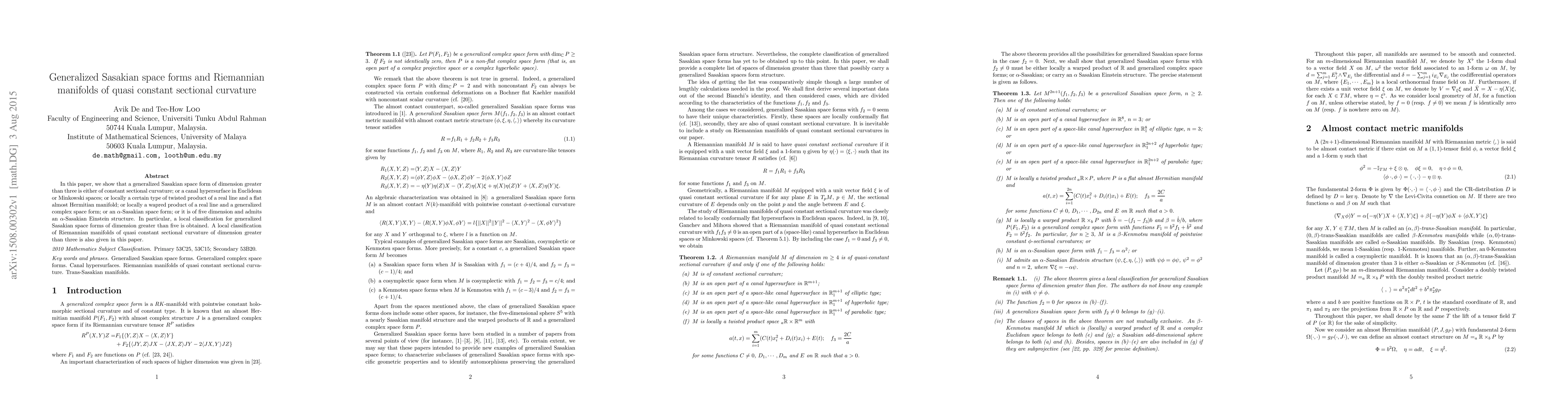 This paper classifies generalized Sasakian space forms of dimensions greater than three, showing they fall into several categories including canal hypersurfaces and twisted/warped product structures. Additionally, it provides a local classification for these forms and Riemannian manifolds with quasi constant sectional curvature of dimension greater than three.