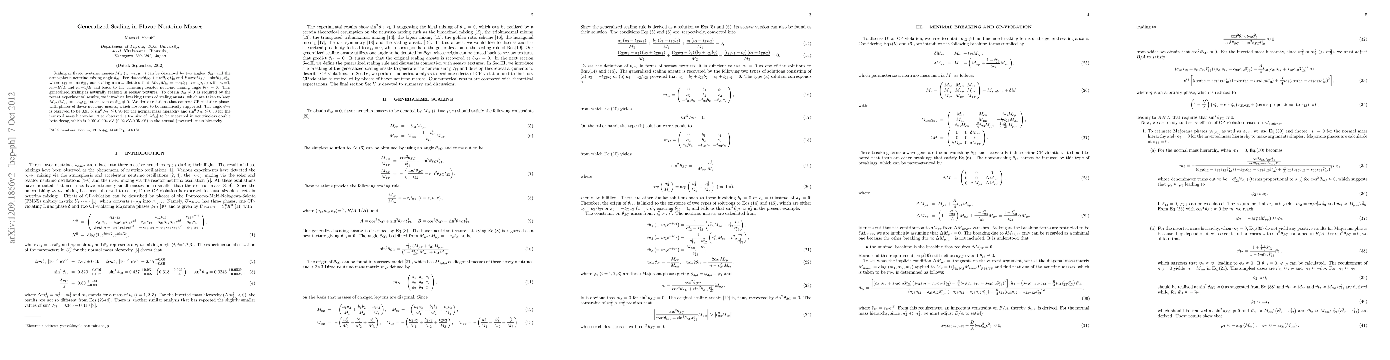 This paper explores a generalized scaling model for flavor neutrino masses, proposing that the mass ratios can be described by two angles, $\theta_{SC}$ and $\theta_{23}$. It introduces breaking terms to reconcile theoretical predictions with experimental results, deriving relations connecting CP violating phases with mass phases. The model predicts specific values for $\theta_{SC}$ and the mass $|M_{ee}|$ for both normal and inverted mass hierarchies.
