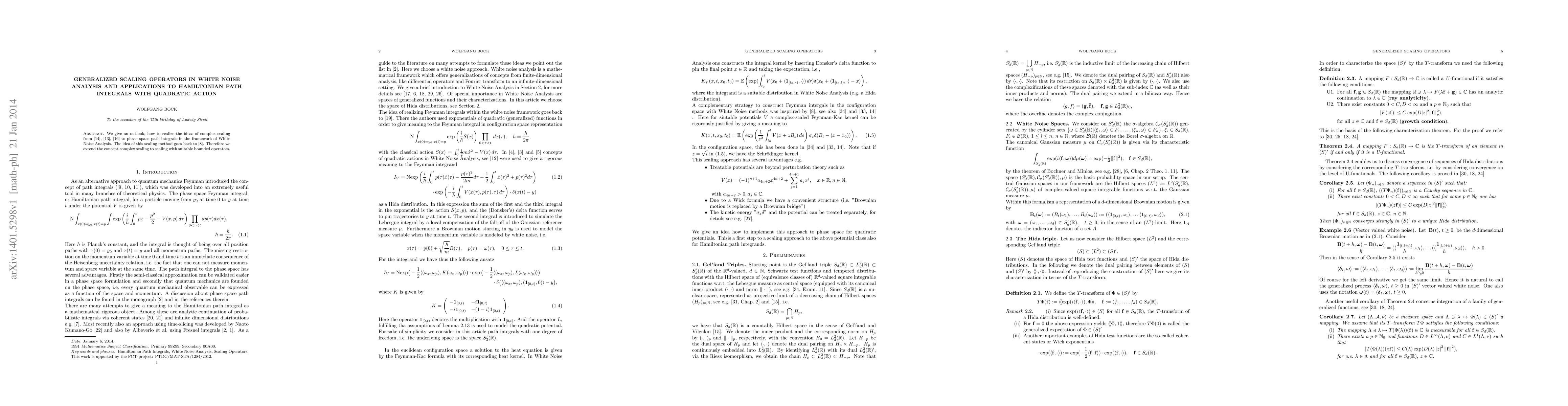 Summary: This paper extends the concept of complex scaling to generalized scaling operators within White Noise Analysis, utilizing these operators to transform Hamiltonian path integrals with quadratic actions. The method is rooted in the foundational ideas of Doss and previous work by Grothaus, Vogel, and Streit.