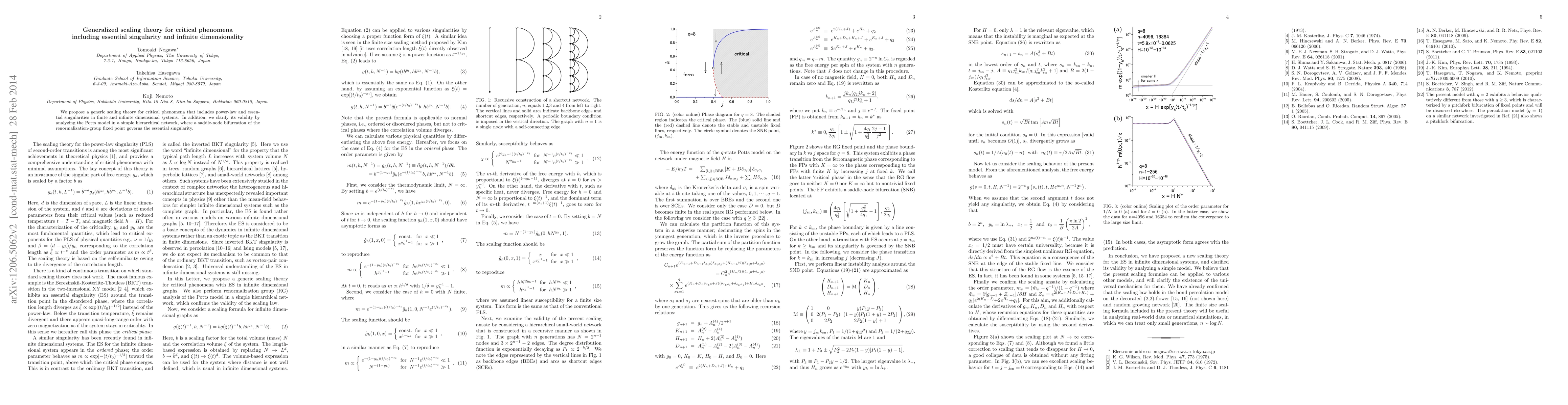 We propose a generic scaling theory for critical phenomena that includes power-law and essential singularities in finite and infinite dimensional systems. In addition, we clarify its validity by analyzing the Potts model in a simple hierarchical network, where a saddle-node bifurcation of the renormalization-group fixed point governs the essential singularity.
