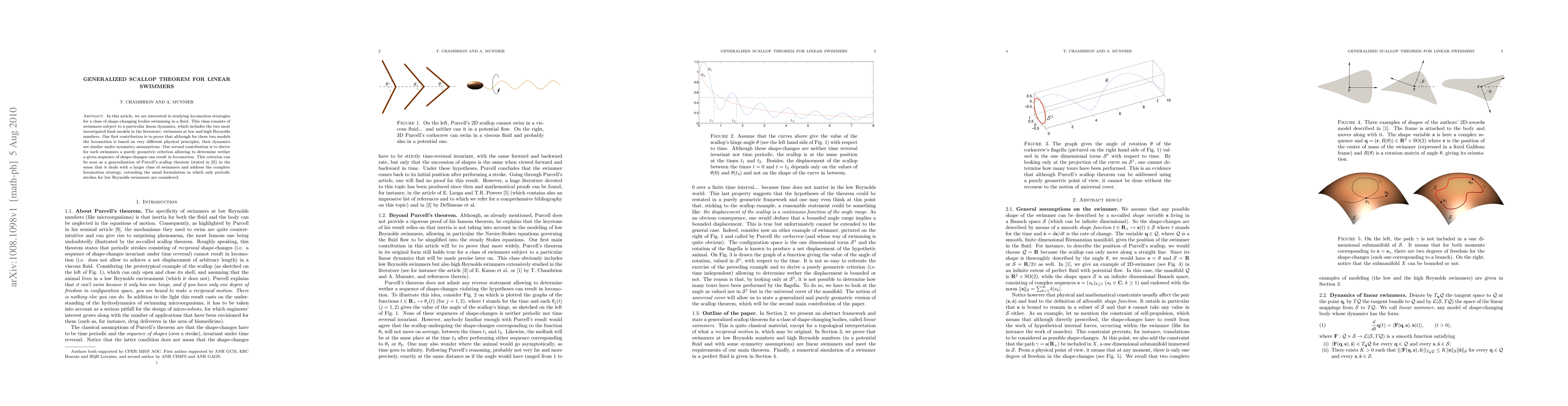 In this article, we are interested in studying locomotion strategies for a class of shape-changing bodies swimming in a fluid. This class consists of swimmers subject to a particular linear dynamics, which includes the two most investigated limit models in the literature: swimmers at low and high Reynolds numbers. Our first contribution is to prove that although for these two models the locomotion is based on very different physical principles, their dynamics are similar under symmetry assumptions. Our second contribution is to derive for such swimmers a purely geometric criterion allowing to determine wether a given sequence of shape-changes can result in locomotion. This criterion can be seen as a generalization of Purcell's scallop theorem (stated in Purcell (1977)) in the sense that it deals with a larger class of swimmers and address the complete locomotion strategy, extending the usual formulation in which only periodic strokes for low Reynolds swimmers are considered.