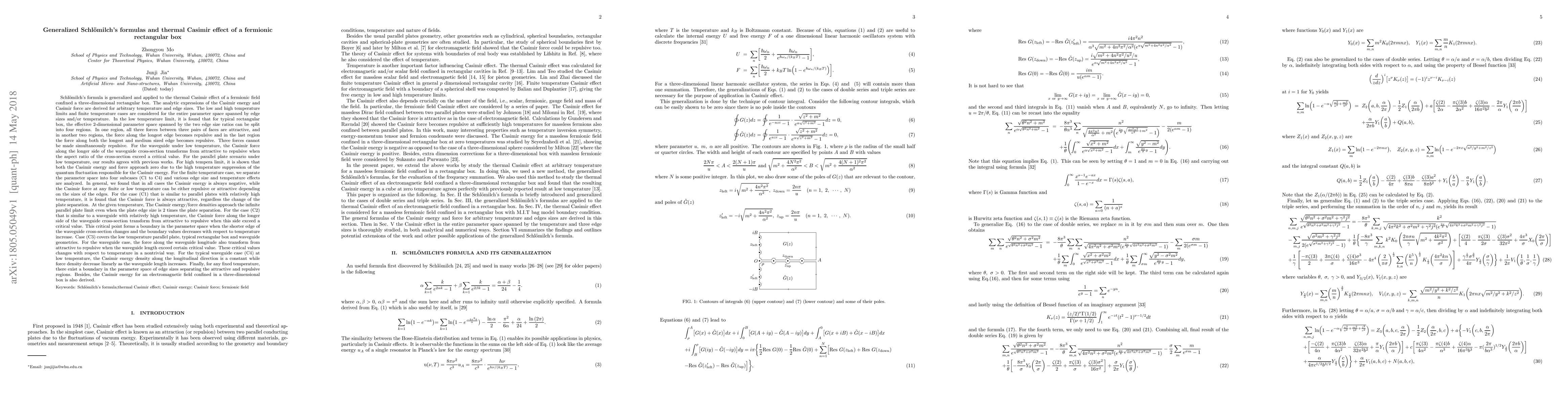 This paper generalizes Schlomilch's formula to derive analytic expressions for the thermal Casimir effect in a fermionic rectangular box at arbitrary temperatures. The study reveals that the Casimir force can switch from attractive to repulsive under low temperatures, depending on the aspect ratio of the box's cross-section, and confirms the Casimir energy is always negative while the force can be either repulsive or attractive based on edge sizes and temperature.
