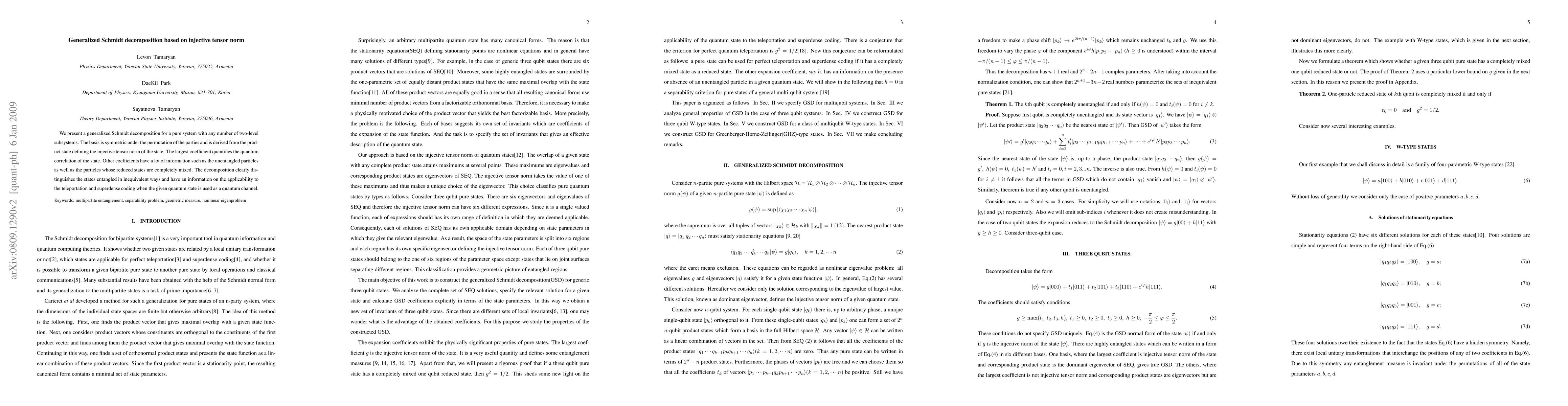 This paper presents a new method for analyzing quantum states called generalized Schmidt decomposition, which can reveal information on entanglement levels and particle correlations. It has implications for quantum teleportation and superdense coding applications.