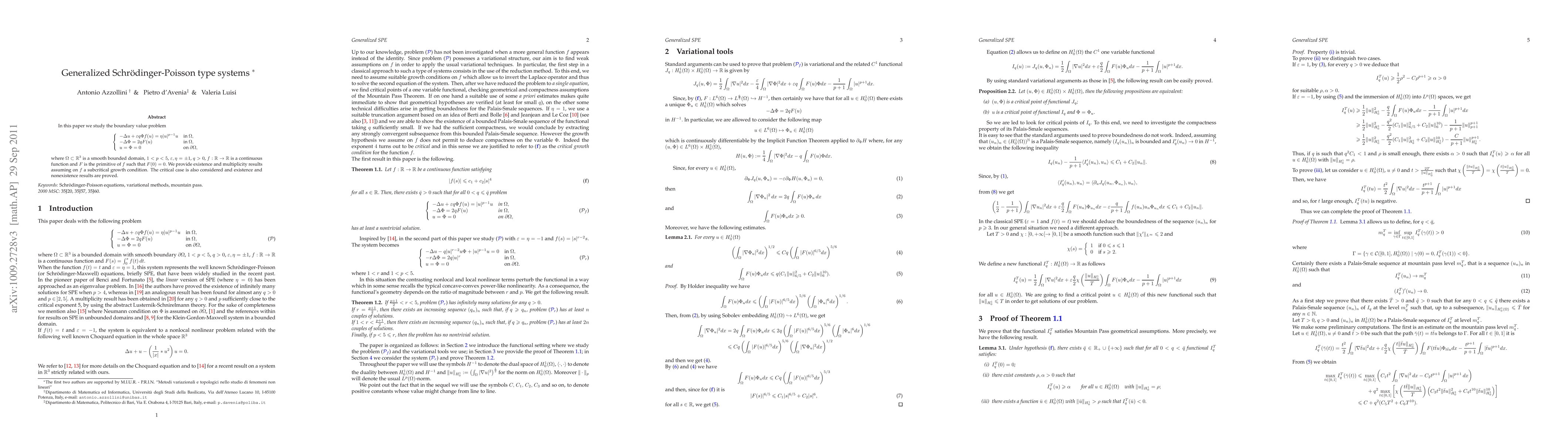 The paper studies generalized Schrodinger-Poisson type systems on a bounded domain with Dirichlet boundary conditions, utilizing variational methods and Palais-Smale conditions.
