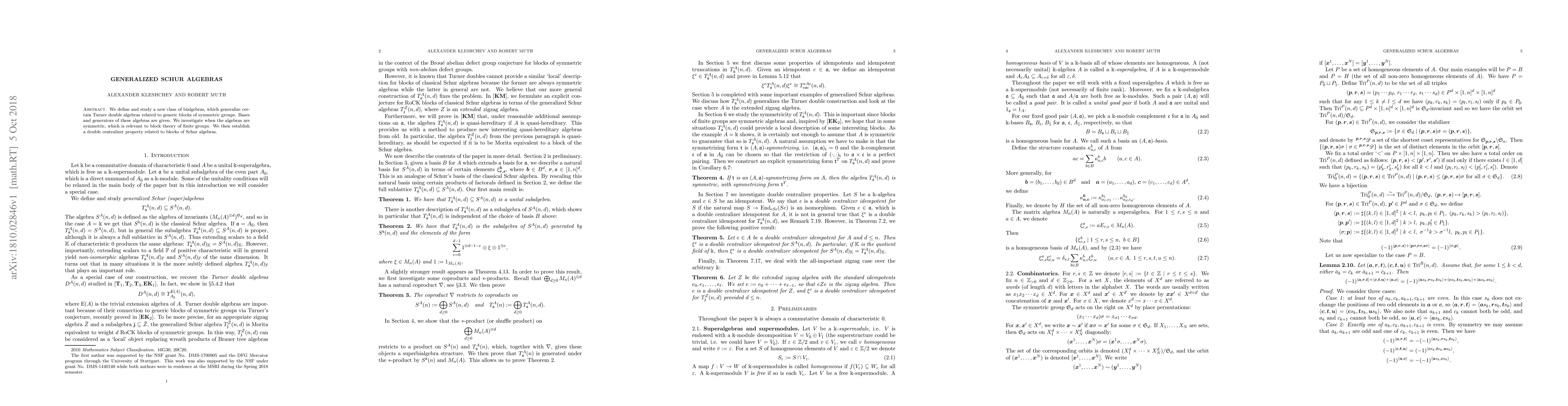 This paper introduces a new type of bialgebras called Generalized Schur algebras, which extend specific Turner double algebras linked to symmetric group blocks. It details their bases and generators, explores symmetry conditions relevant to finite group block theory, and establishes a double centralizer property tied to Schur algebras' blocks.