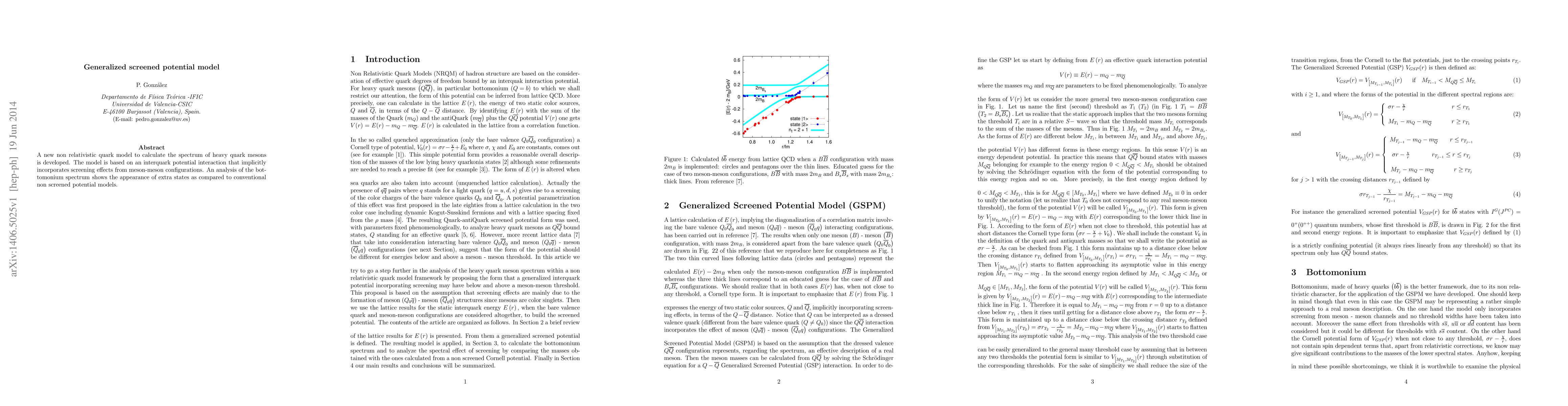 The paper introduces a new non-relativistic quark model to determine the spectrum of heavy quark mesons, incorporating screening effects. Analysis of the bottomonium spectrum reveals additional states not predicted by conventional models.