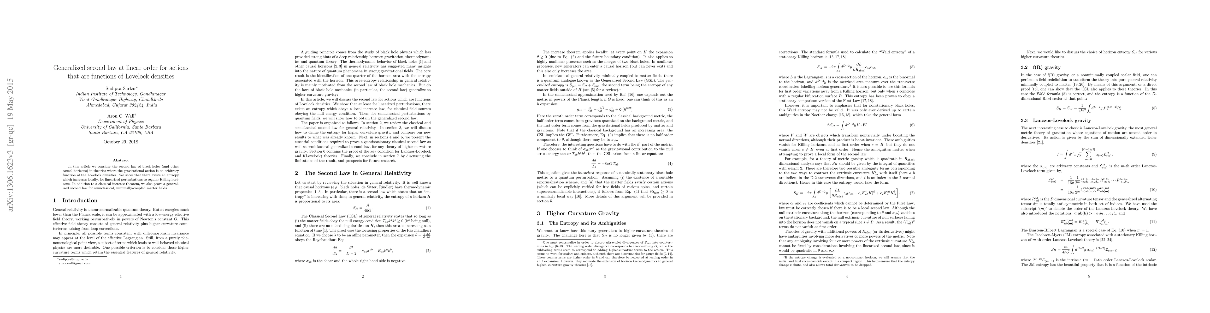 This paper investigates the generalized second law of black hole thermodynamics in theories with actions dependent on Lovelock densities, demonstrating a locally increasing entropy for linearized perturbations to Killing horizons and proving a generalized second law for semiclassical matter fields.