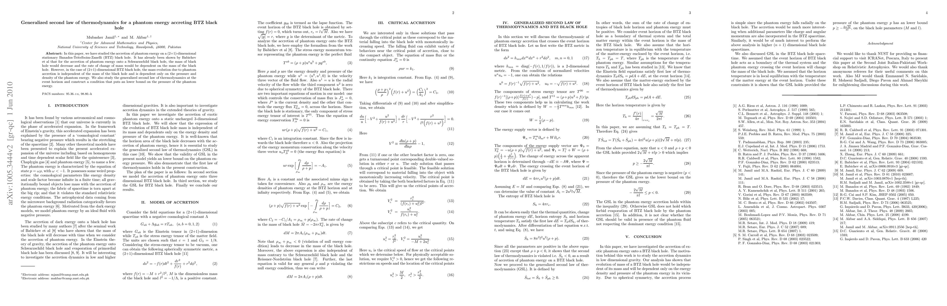 This paper investigates the accretion of phantom energy onto a (2+1)-dimensional BTZ black hole, finding that mass evolution depends solely on phantom energy's pressure and density, not the black hole's mass. It also establishes a generalized second law of thermodynamics, setting a lower bound on phantom energy pressure.