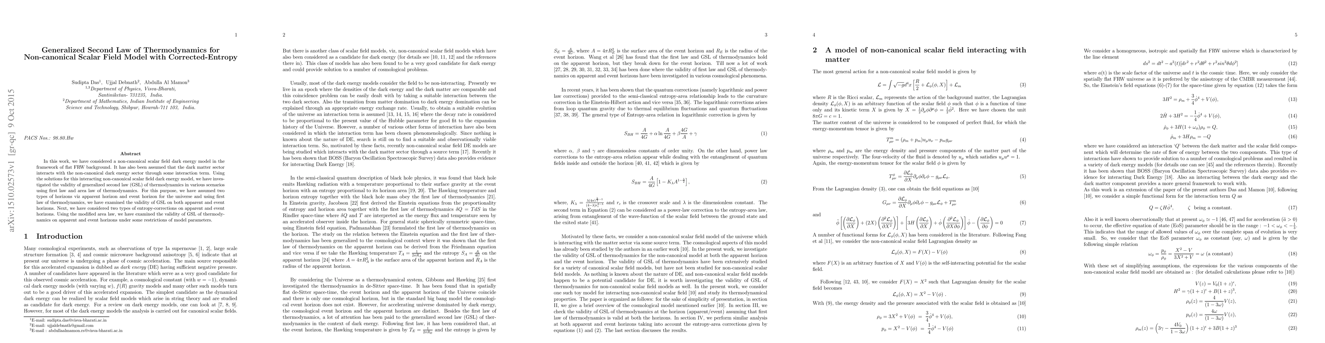 This paper examines the generalized second law of thermodynamics in a non-canonical scalar field dark energy model with interaction between dark matter and dark energy. It explores the law's validity on apparent and event horizons using corrected entropy formulations and thermodynamic first law.