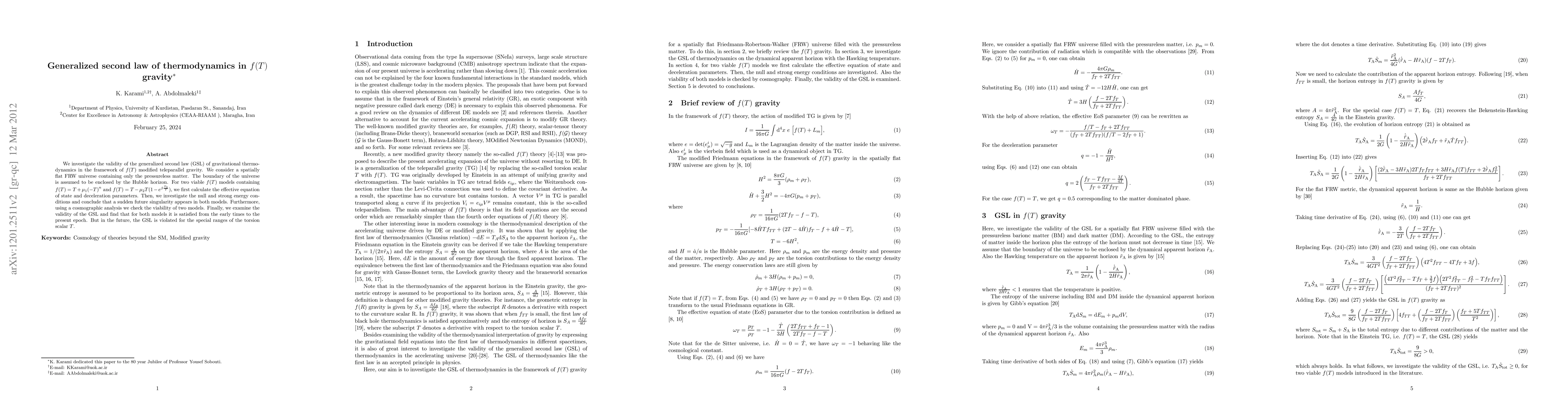 This paper examines the generalized second law of thermodynamics in f(T) modified teleparallel gravity within a spatially flat FRW universe. It finds that the GSL is satisfied from early times to the present but will be violated in the future for specific torsion scalar values.
