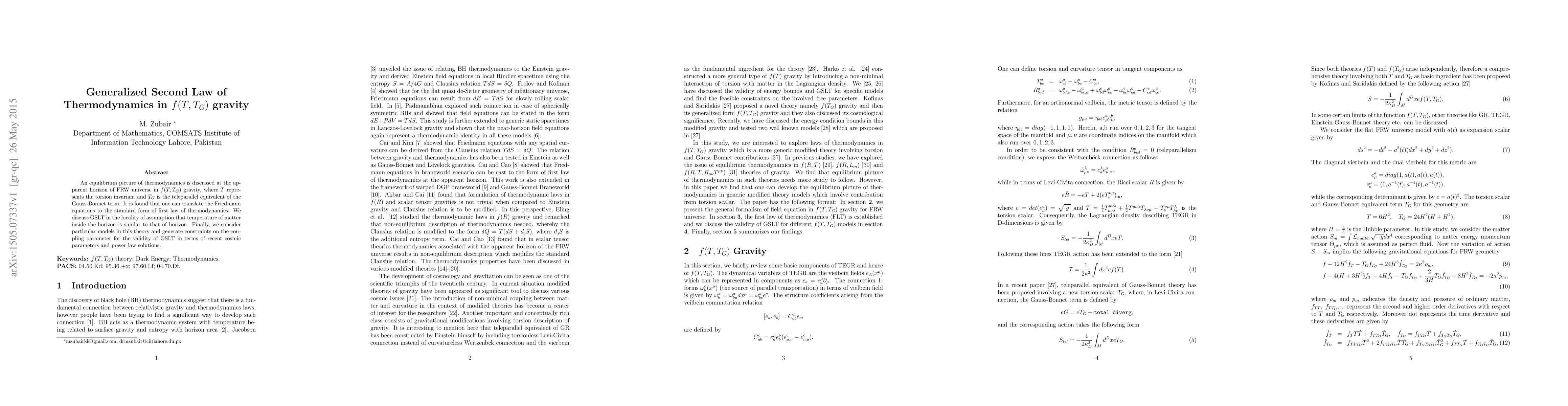 An equilibrium picture of thermodynamics is discussed at the apparent horizon of FRW universe in $f(T,T_G)$ gravity, where $T$ represents the torsion invariant and $T_G$ is the teleparallel equivalent of the Gauss-Bonnet term. It is found that one can translate the Friedmann equations to the standard form of first law of thermodynamics. We discuss GSLT in the locality of assumption that temperature of matter inside the horizon is similar to that of horizon. Finally, we consider particular models in this theory and generate constraints on the coupling parameter for the validity of GSLT in terms of recent cosmic parameters and power law solutions.