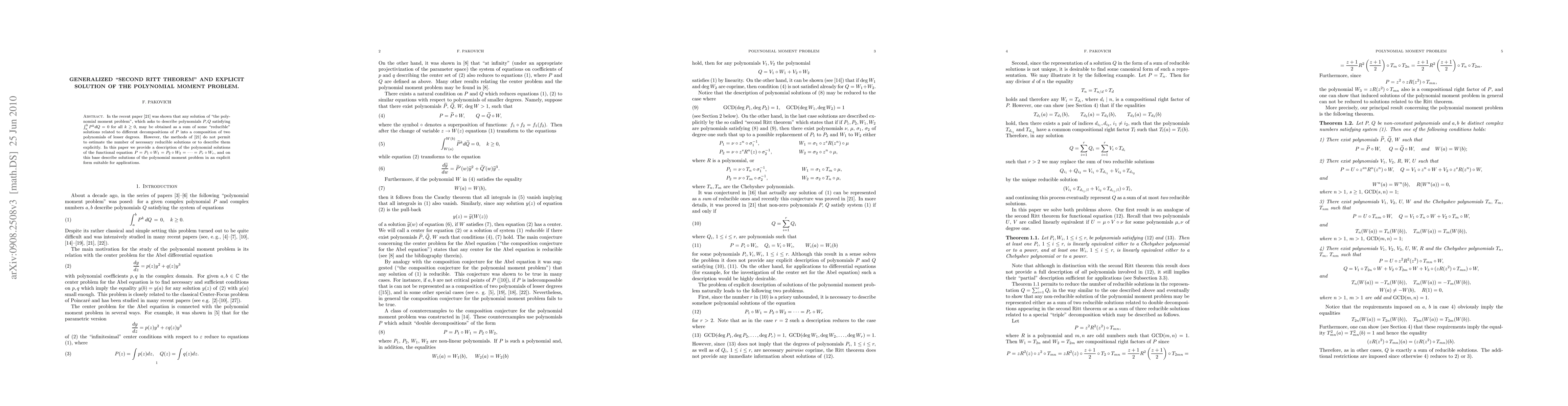 Researchers provide an explicit solution to the polynomial moment problem using a generalized version of the second Ritt theorem, which simplifies the proof and includes new results.