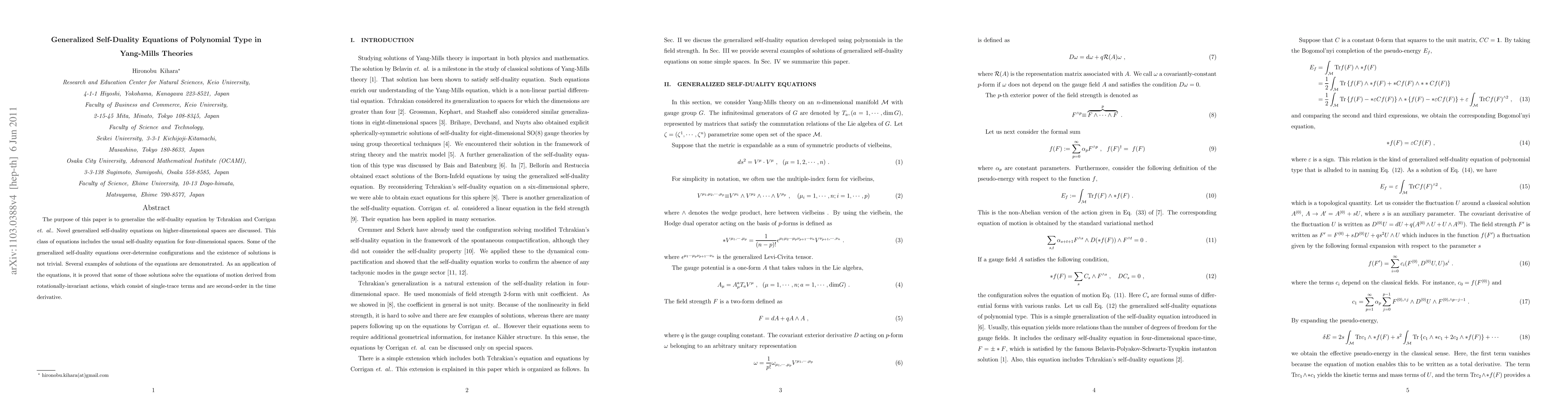 The purpose of this paper is to generalize the self-duality equation by Tchrakian and Corrigan et. al.. Novel generalized self-duality equations on higher-dimensional spaces are discussed. This class of equations includes the usual self-duality equation for four-dimensional spaces. Some of the generalized self-duality equations over-determine configurations and the existence of solutions is not trivial. Several examples of solutions of the equations are demonstrated. %Application of these solutions in various models is attractive as shown in the case of instanton. As an application of the equations, it is proved that some of those solutions solve the equations of motion derived from rotationally-invariant actions, which consist of single-trace terms and are second-order in the time derivative.