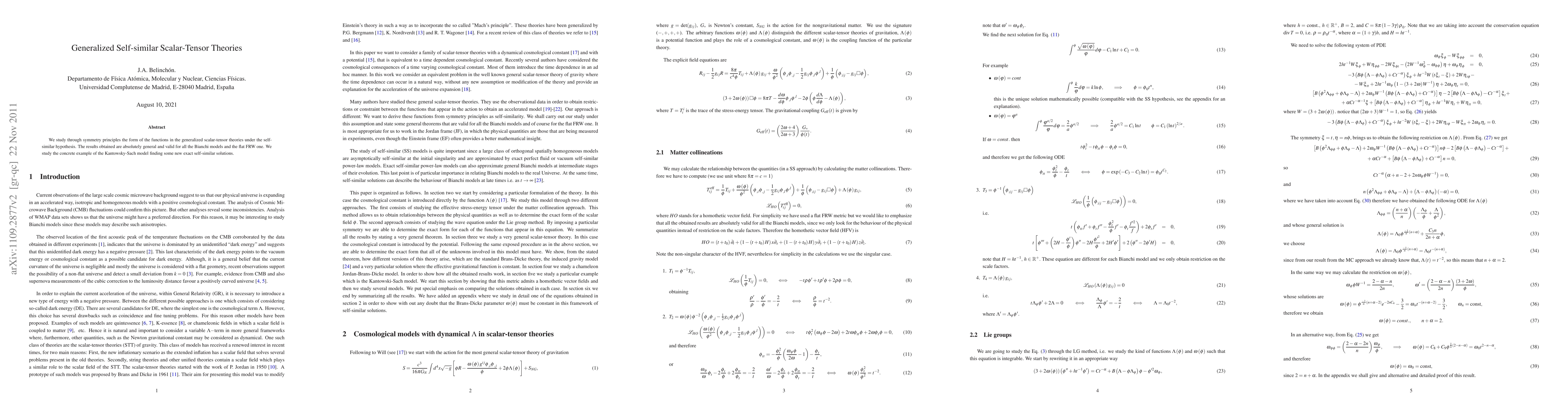 Researchers developed a framework for self-similar scalar-tensor theories using symmetry principles, revealing exact solutions for certain models like the Kantowsky-Sach model.