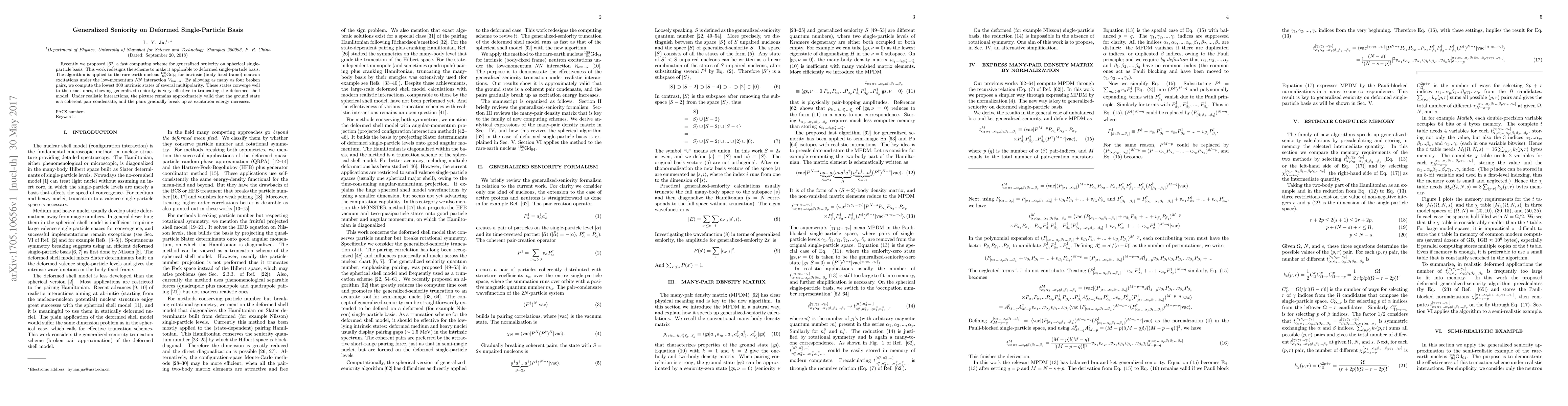 Recently we proposed [62] a fast computing scheme for generalized seniority on spherical single-particle basis. This work redesigns the scheme to make it applicable to deformed single-particle basis. The algorithm is applied to the rare-earth nucleus $^{158}_{~64}$Gd$_{94}$ for intrinsic (body-fixed frame) neutron excitations under the low-momentum {\emph{NN}} interaction $V_{{\rm{low}}-k}$. By allowing as many as four broken pairs, we compute the lowest $300$ intrinsic states of several multipolarity. These states converge well to the exact ones, showing generalized seniority is very effective in truncating the deformed shell model. Under realistic interactions, the picture remains approximately valid that the ground state is a coherent pair condensate, and the pairs gradually break up as excitation energy increases.