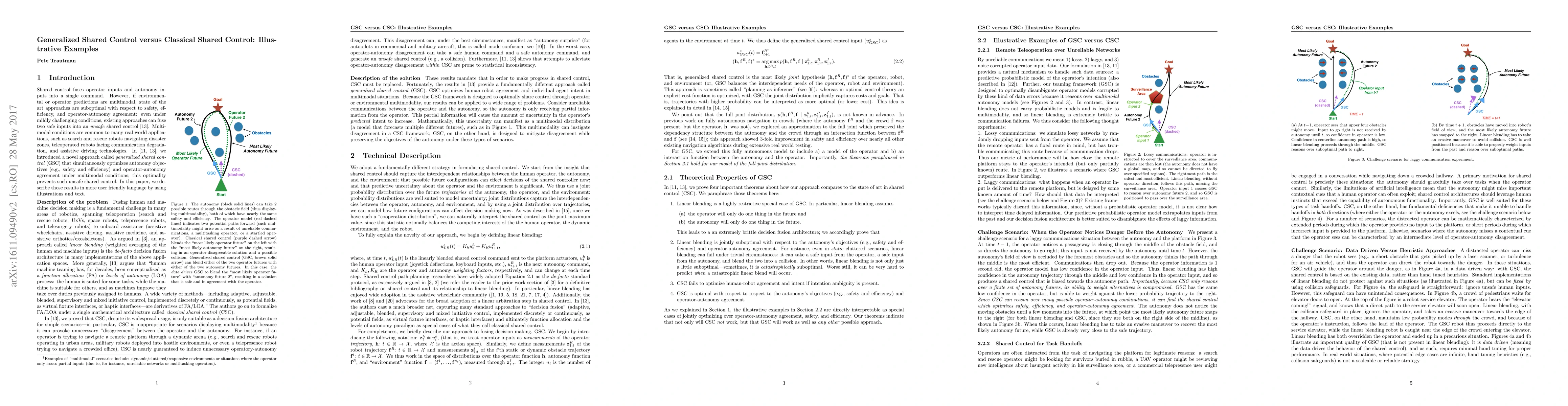 Shared control fuses operator inputs and autonomy inputs into a single command. However, if environmental or operator predictions are multimodal, state of the art approaches are suboptimal with respect to safety, efficiency, and operator-autonomy agreement: even under mildly challenging conditions, existing approaches can fuse two safe inputs into an unsafe shared control [13]. Multi-modal conditions are common to many real world applications, such as search and rescue robots navigating disaster zones, teleoperated robots facing communication degradation, and assistive driving technologies. In [11, 13], we introduced a novel approach called generalized shared control (GSC) that simultaneously optimizes autonomy objectives (e.g., safety and efficiency) and operator-autonomy agreement under multimodal conditions; this optimality prevents such unsafe shared control. In this paper, we describe those results in more user friendly language by using illustrations and text.