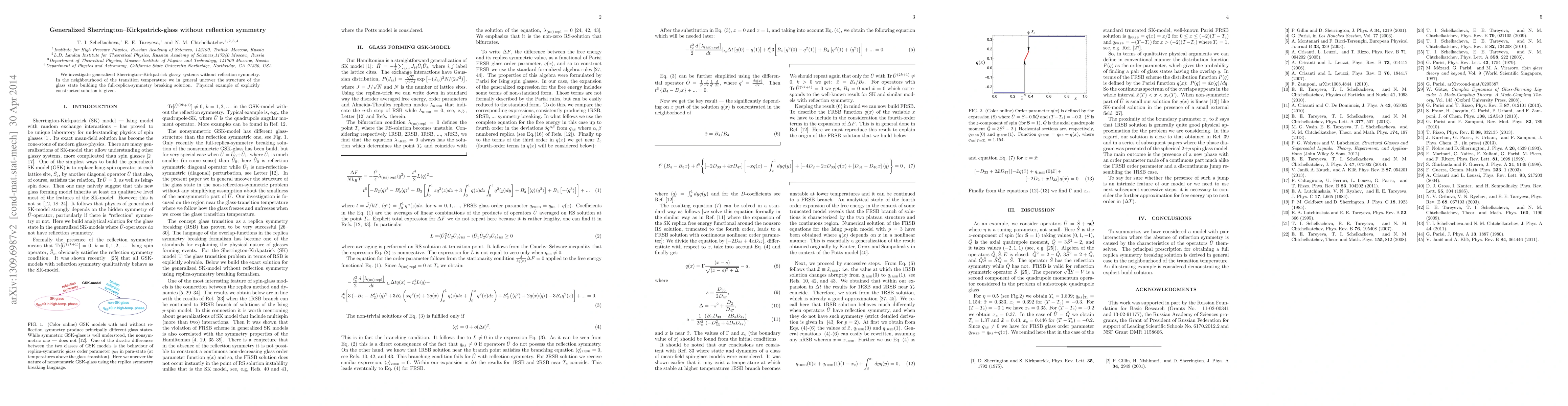 We investigate generalized Sherrington--Kirkpatrick glassy systems without reflection symmetry. In the neighbourhood of the transition temperature we in general uncover the structure of the glass state building the full-replica-symmetry breaking solution. Physical example of explicitly constructed solution is given.