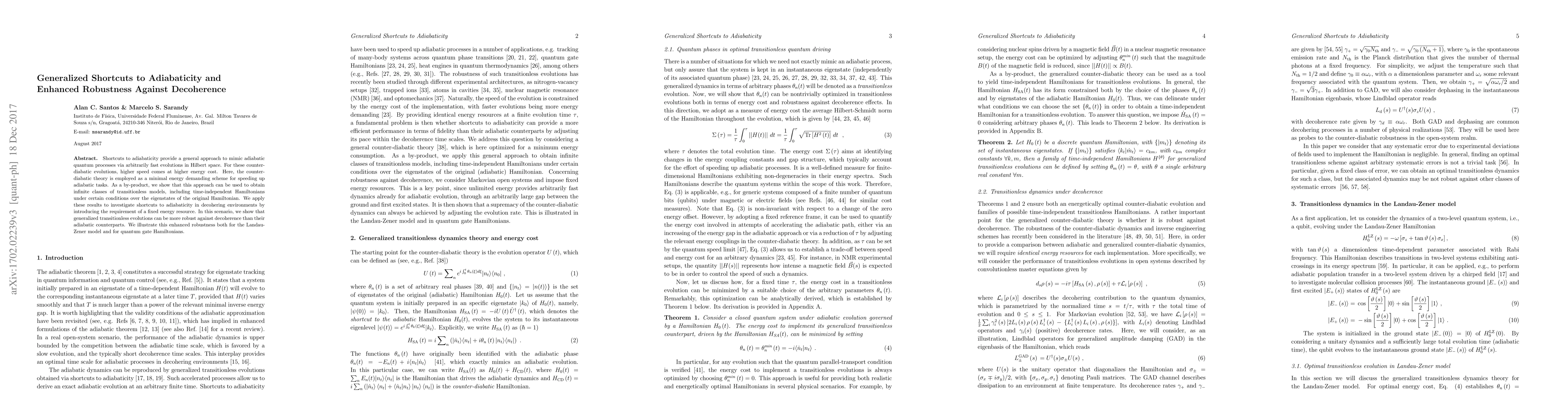 This paper explores generalized shortcuts to adiabaticity, demonstrating a minimal energy scheme for fast quantum processes. It shows that these methods can create transitionless models and enhance robustness against decoherence, outperforming traditional adiabatic processes in decohering environments.