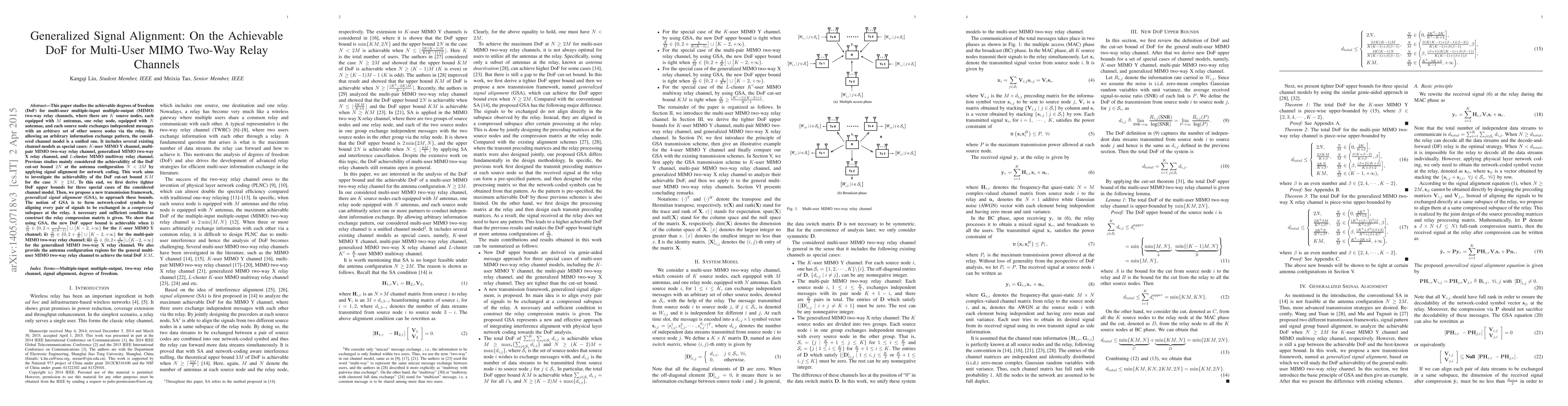 This paper studies the achievable degrees of freedom for multi-user MIMO two-way relay channels, where there are $K$ source nodes, each equipped with $M$ antennas, one relay node, equipped with $N$ antennas, and each source node exchanges independent messages with an arbitrary set of other source nodes via the relay. By allowing an arbitrary information exchange pattern, the considered channel model is a unified one. It includes several existing channel models as special cases: $K$-user MIMO Y channel, multi-pair MIMO two-way relay channel, generalized MIMO two-way X relay channel, and $L$-cluster MIMO multiway relay channel. Previous studies mainly considered the achievability of the DoF cut-set bound $2N$ at the antenna configuration $N < 2M$ by applying signal alignment. This work aims to investigate the achievability of the DoF cut-set bound $KM$ for the case $N\geq 2M$. To this end, we first derive tighter DoF upper bounds for three special cases of the considered channel model. Then, we propose a new transmission framework, generalized signal alignment, to approach these bounds. The notion of GSA is to form network-coded symbols by aligning every pair of signals to be exchanged in a compressed subspace at the relay. A necessary and sufficient condition to construct the relay compression matrix is given. We show that using GSA, the new DoF upper bound is achievable when i) $\frac{N}{M} \in \big(0, 2+\frac{4}{K(K-1)}\big] \cup \big[K-2, +\infty\big)$ for the $K$-user MIMO Y channel; ii) $\frac{N}{M} \in \big(0, 2+\frac{4}{K}\big] \cup \big[K-2, +\infty\big)$ for the multi-pair MIMO two-way relay channel; iii) $\frac{N}{M} \in \big(0, 2+\frac{8}{K^2}\big] \cup \big[K-2, +\infty\big)$ for the generalized MIMO two-way X relay channel. We also provide the antenna configuration regions for the general multi-user MIMO two-way relay channel to achieve the total DoF $KM$.