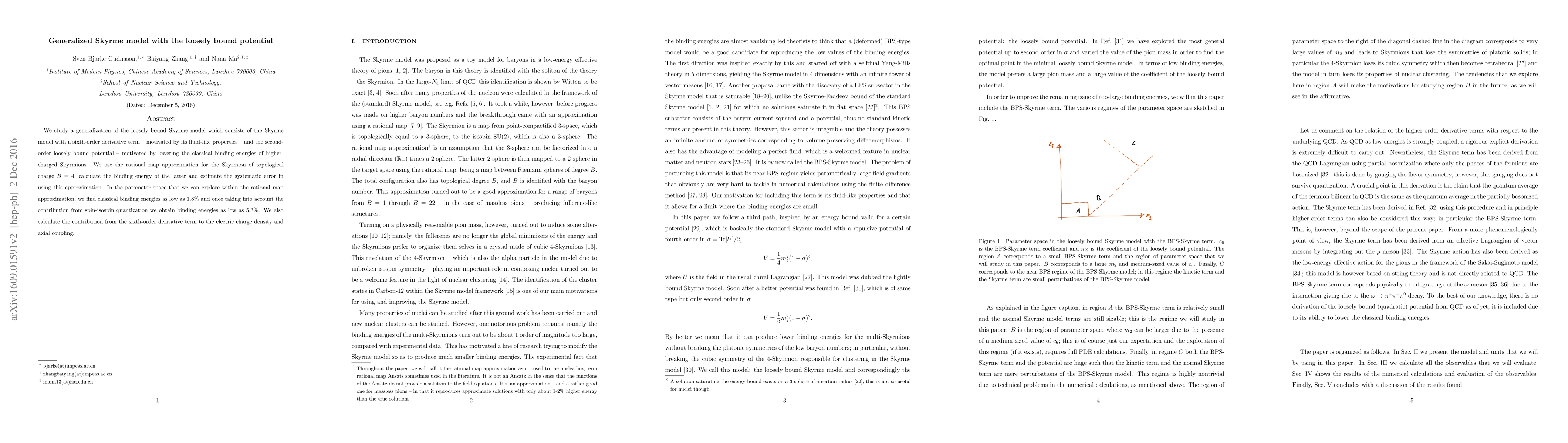 We study a generalization of the loosely bound Skyrme model which consists of the Skyrme model with a sixth-order derivative term - motivated by its fluid-like properties - and the second-order loosely bound potential - motivated by lowering the classical binding energies of higher-charged Skyrmions. We use the rational map approximation for the Skyrmion of topological charge B=4, calculate the binding energy of the latter and estimate the systematic error in using this approximation. In the parameter space that we can explore within the rational map approximation, we find classical binding energies as low as 1.8% and once taking into account the contribution from spin-isospin quantization we obtain binding energies as low as 5.3%. We also calculate the contribution from the sixth-order derivative term to the electric charge density and axial coupling.
