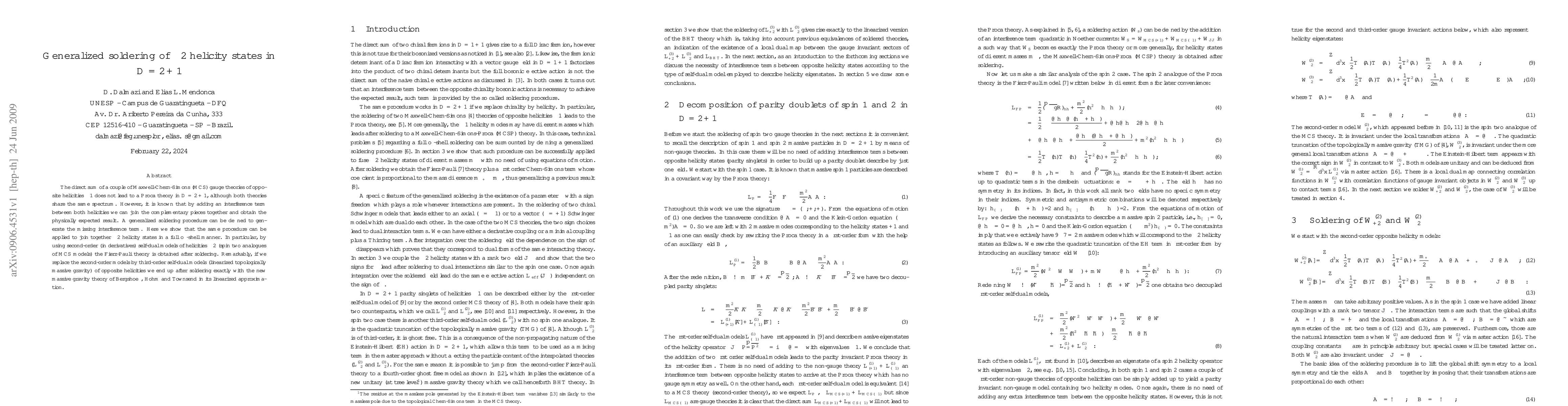 This paper introduces a generalized soldering procedure to combine $\pm 2$ helicity states in $D=2+1$ dimensions, resulting in the Fierz-Pauli theory from second-order self-dual models and the new massive gravity theory from third-order models. The method successfully merges complementary pieces to achieve expected physical results.