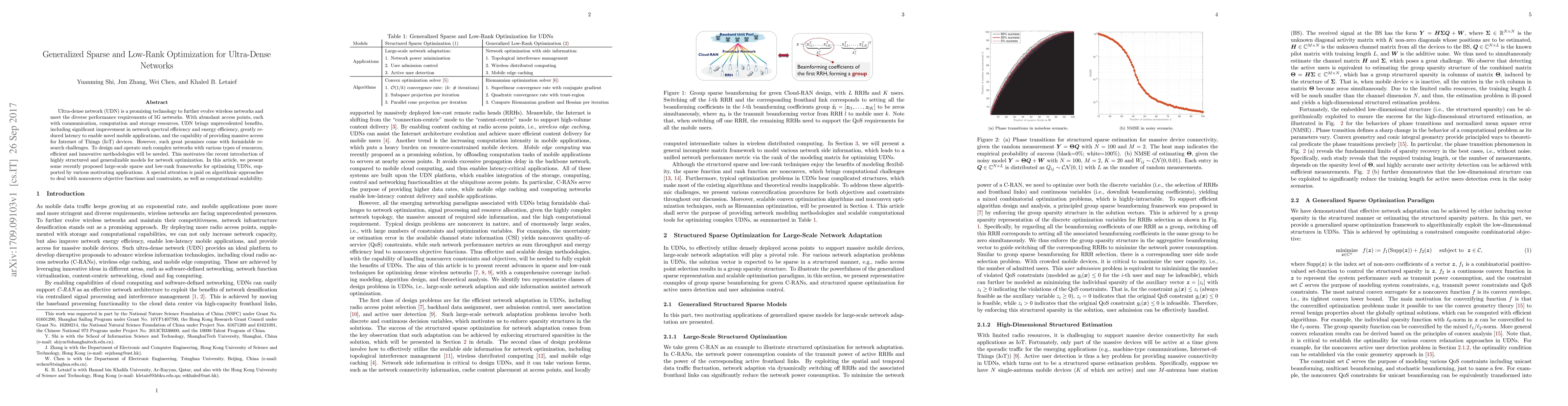 Ultra-dense network (UDN) is a promising technology to further evolve wireless networks and meet the diverse performance requirements of 5G networks. With abundant access points, each with communication, computation and storage resources, UDN brings unprecedented benefits, including significant improvement in network spectral efficiency and energy efficiency, greatly reduced latency to enable novel mobile applications, and the capability of providing massive access for Internet of Things (IoT) devices. However, such great promises come with formidable research challenges. To design and operate such complex networks with various types of resources, efficient and innovative methodologies will be needed. This motivates the recent introduction of highly structured and generalizable models for network optimization. In this article, we present some recently proposed large-scale sparse and low-rank frameworks for optimizing UDNs, supported by various motivating applications. A special attention is paid on algorithmic approaches to deal with nonconvex objective functions and constraints, as well as computational scalability.