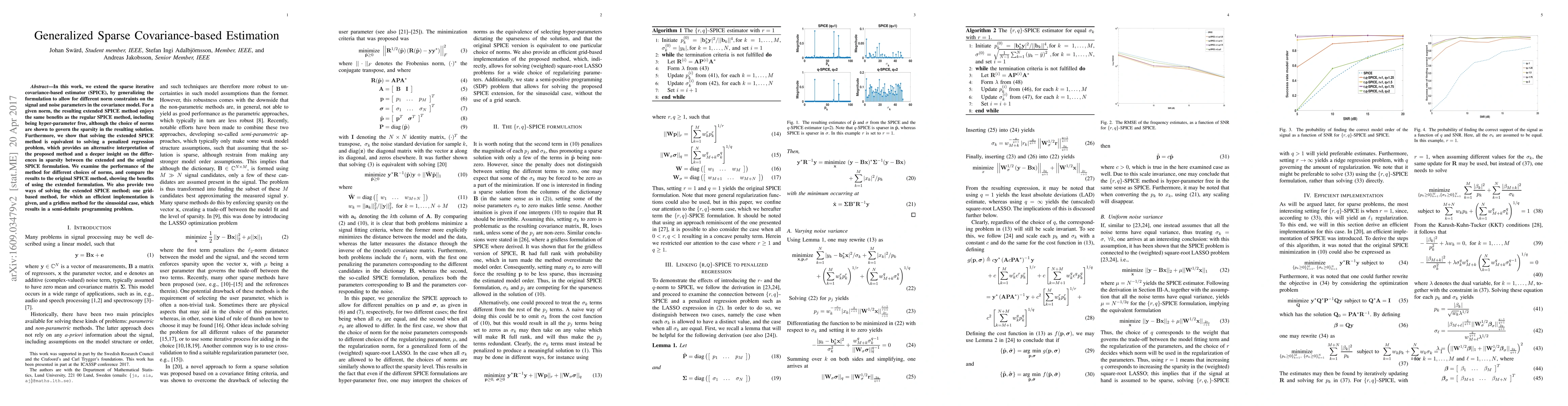 In this work, we extend the sparse iterative covariance-based estimator (SPICE), by generalizing the formulation to allow for different norm constraints on the signal and noise parameters in the covariance model. For a given norm, the resulting extended SPICE method enjoys the same benefits as the regular SPICE method, including being hyper-parameter free, although the choice of norms are shown to govern the sparsity in the resulting solution. Furthermore, we show that solving the extended SPICE method is equivalent to solving a penalized regression problem, which provides an alternative interpretation of the proposed method and a deeper insight on the differences in sparsity between the extended and the original SPICE formulation. We examine the performance of the method for different choices of norms, and compare the results to the original SPICE method, showing the benefits of using the extended formulation. We also provide two ways of solving the extended SPICE method; one grid-based method, for which an efficient implementation is given, and a gridless method for the sinusoidal case, which results in a semi-definite programming problem.