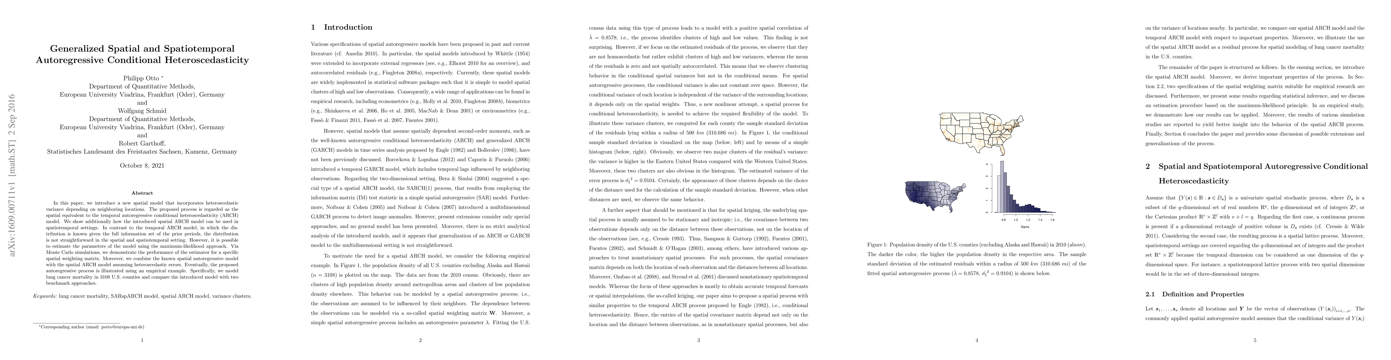 This paper proposes a spatial autoregressive conditional heteroscedasticity (ARCH) model that accounts for heteroscedastic variance influenced by neighboring locations. The model is demonstrated through Monte Carlo simulations and applied to lung cancer mortality data across U.S. counties, comparing its performance against benchmark methods.