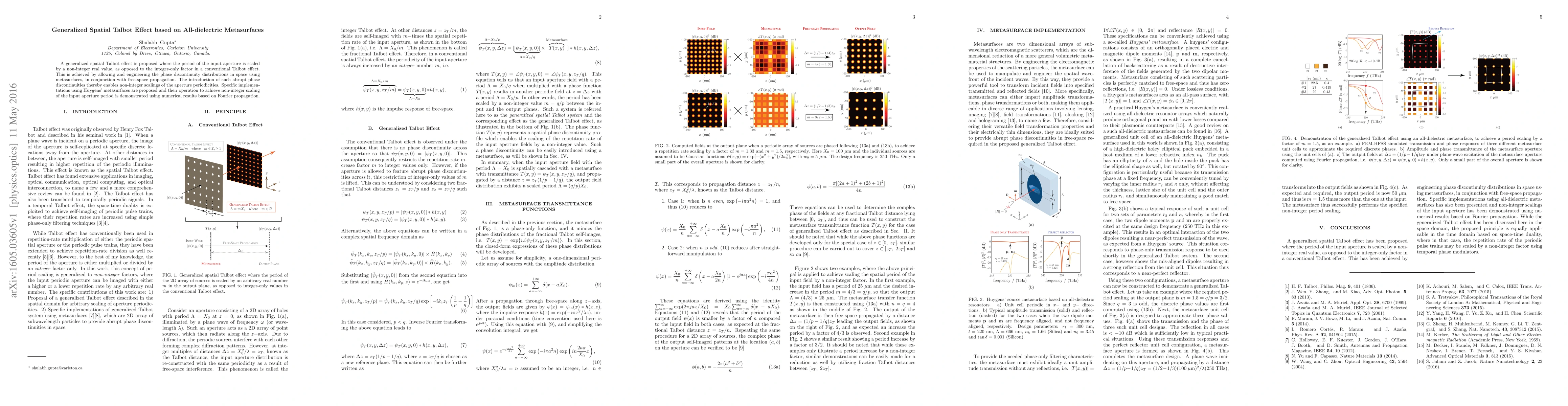 A generalized spatial Talbot effect is proposed where the period of the input aperture is scaled by a non-integer real value, as opposed to the integer-only factor in a conventional Talbot effect. This is achieved by allowing and engineering the phase discontinuity distributions in space using metasurfaces, in conjunction with free-space propagation. The introduction of such abrupt phase discontinuities thereby enables non-integer scalings of the aperture periodicities. Specific implementations using Huygens' metasurfaces are proposed and their operation to achieve non-integer scaling of the input aperture period is demonstrated using numerical results based on Fourier propagation.