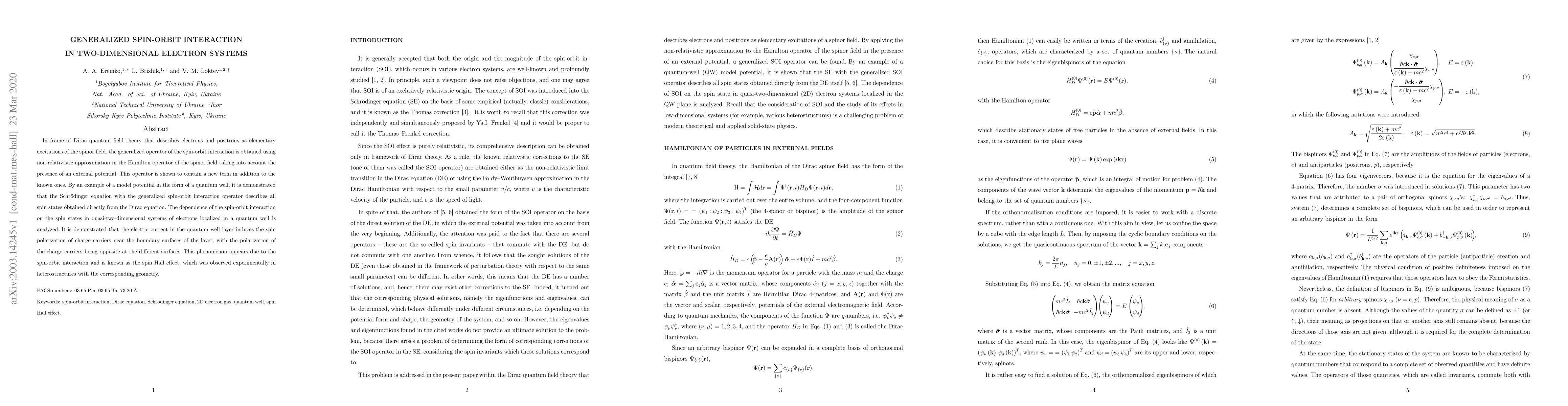 This paper derives a generalized spin-orbit interaction operator in two-dimensional electron systems using Dirac quantum field theory, revealing a new term. It demonstrates that this operator accurately describes spin states from the Dirac equation and shows the spin Hall effect induced by electric current in quantum wells.