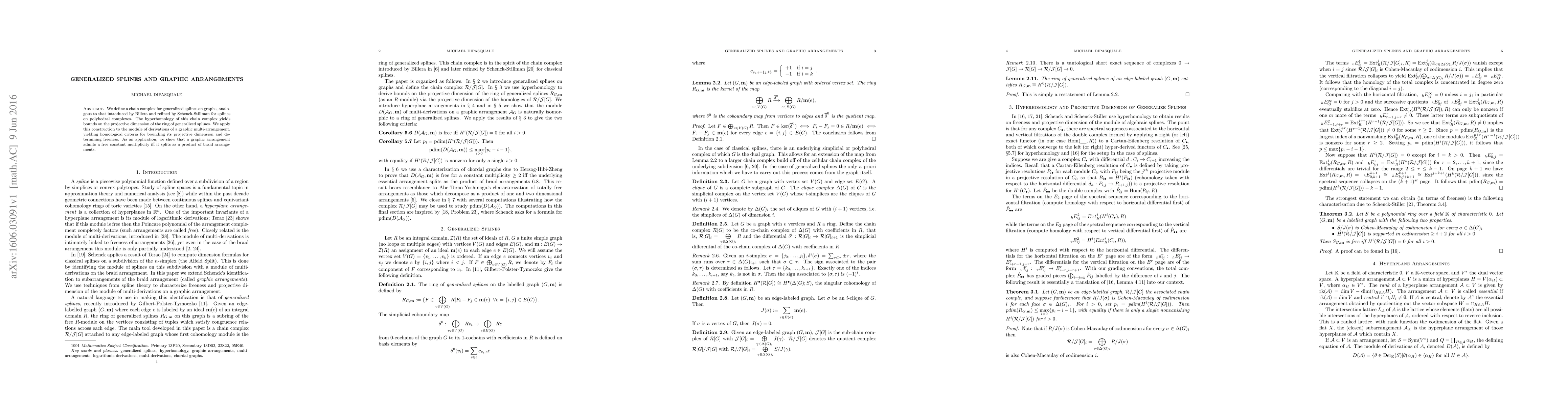 We define a chain complex for generalized splines on graphs, analogous to that introduced by Billera and refined by Schenck-Stillman for splines on polyhedral complexes. The hyperhomology of this chain complex yields bounds on the projective dimension of the ring of generalized splines. We apply this construction to the module of derivations of a graphic multi-arrangement, yielding homological criteria for bounding its projective dimension and determining freeness. As an application, we show that a graphic arrangement admits a free constant multiplicity iff it splits as a product of braid arrangements.