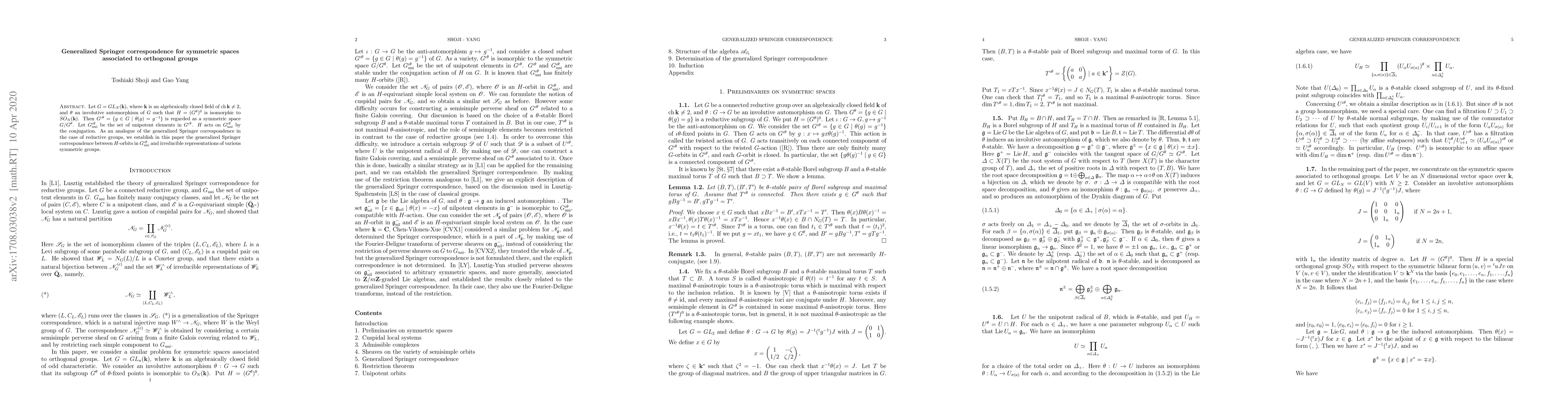 This paper establishes a generalized Springer correspondence for symmetric spaces associated with orthogonal groups, relating $H$-orbits in the unipotent elements of $G^{\iota\theta}$ to irreducible representations of symmetric groups. The study is set in the context of $G = GL_N$ over a field of odd characteristic with an involutive automorphism $\theta$.
