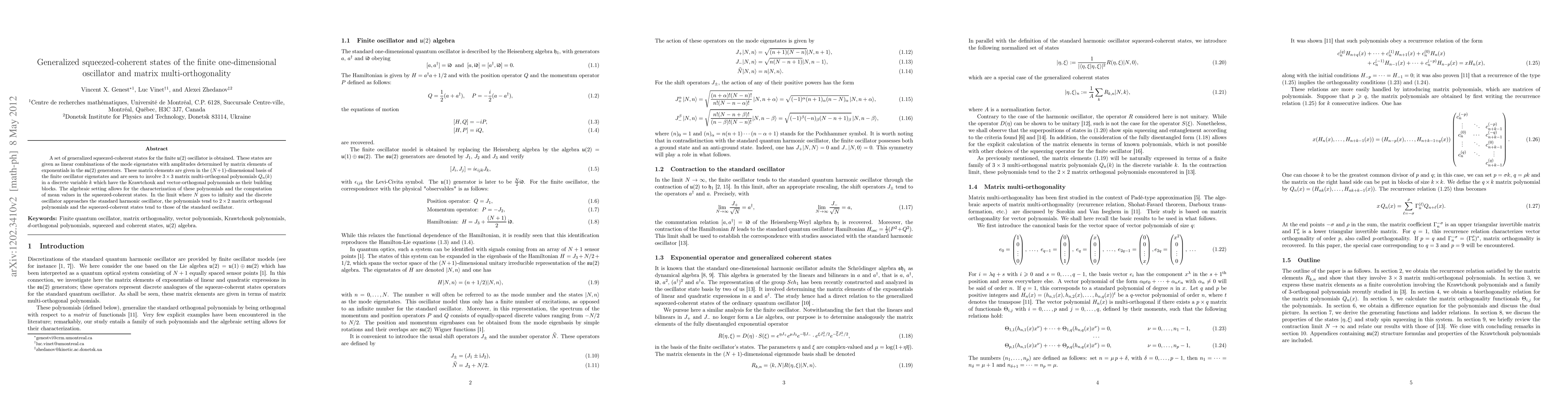 This paper derives generalized squeezed-coherent states for the finite u(2) oscillator using matrix elements of su(2) generators, characterized by 3x3 matrix multi-orthogonal polynomials Q_n(k). These states converge to standard oscillator squeezed-coherent states as the oscillator approaches the infinite limit.