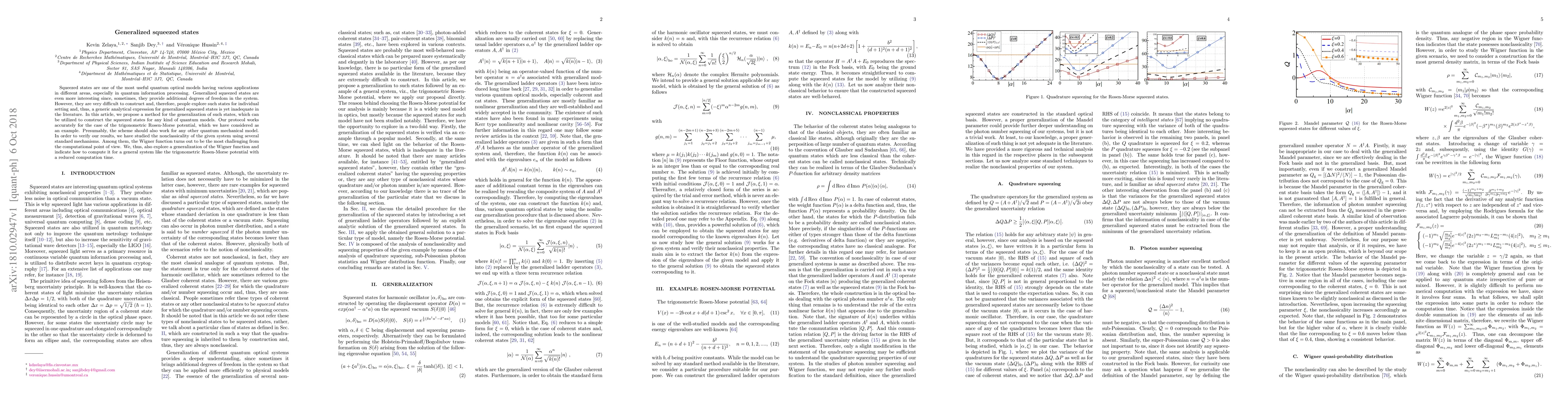 This research paper proposes a method to construct generalized squeezed states for any quantum mechanical model, improving upon previous difficulties in creating such states. It also generalizes the Wigner function computation for reduced computational time, verifying nonclassicality and potential applications.