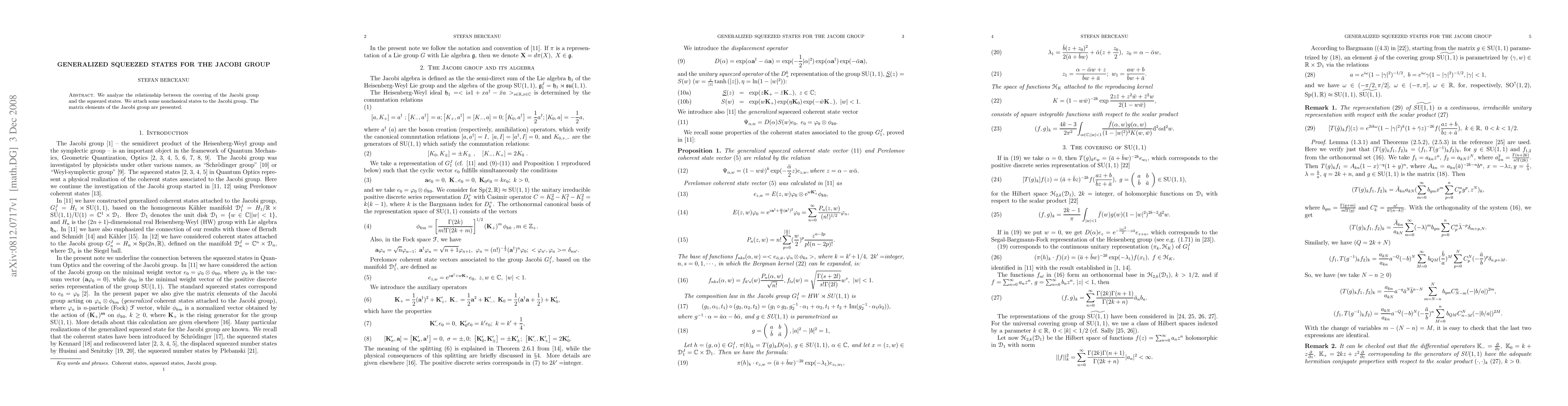 We analyze the relationship between the covering of the Jacobi group and the squeezed states. We attach some nonclassical states to the Jacobi group. The matrix elements of the Jacobi group are presented.