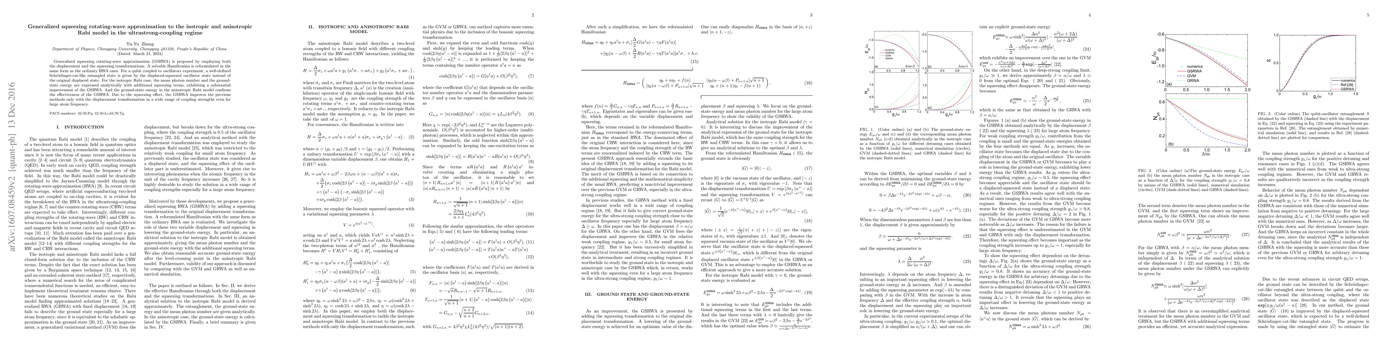 Researchers propose a new method called generalized squeezing rotating-wave approximation to improve understanding of ultrastrong-coupling regime in quantum systems, leading to more accurate calculations for entangled states and ground-state energies.