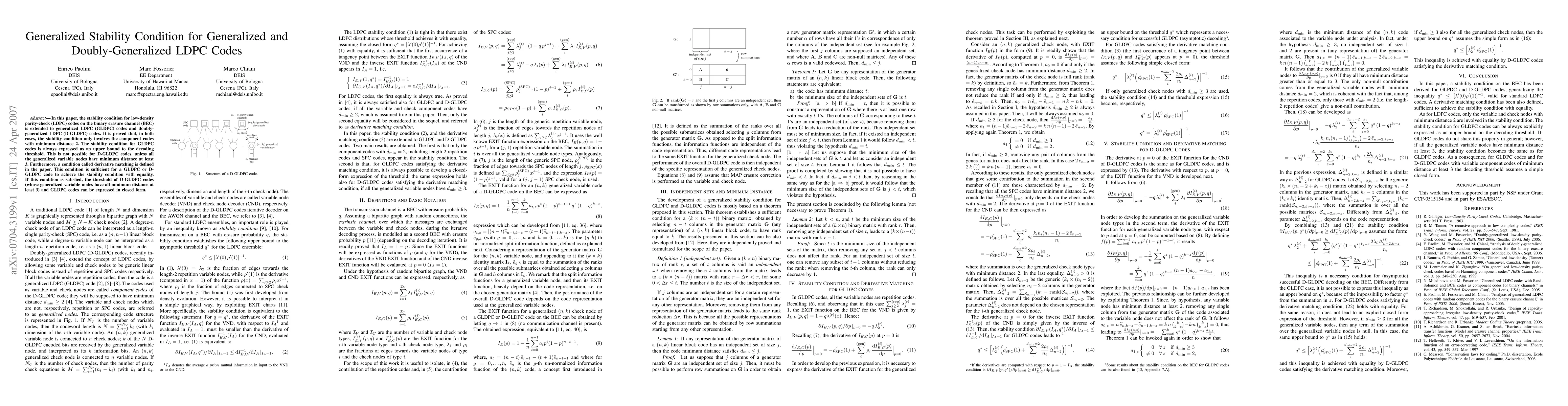 This paper extends the stability condition for LDPC codes to generalized and doubly-generalized LDPC codes, showing that only component codes with minimum distance 2 affect the stability. For doubly-generalized codes, stability requires all generalized variable nodes to have a minimum distance of at least 3.