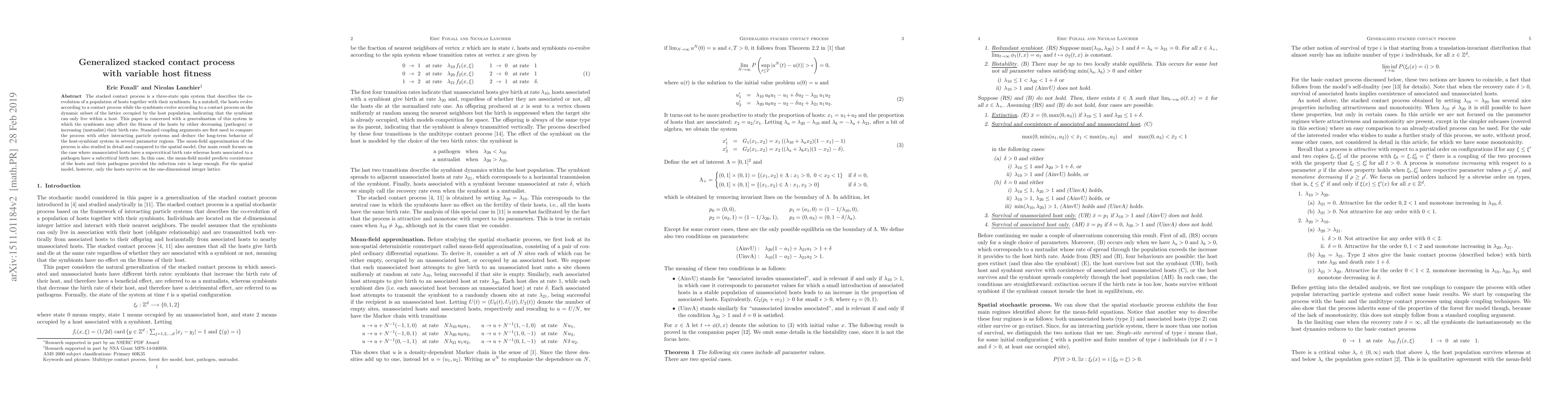 The stacked contact process is a three-state spin system that describes the co-evolution of a population of hosts together with their symbionts. In a nutshell, the hosts evolve according to a contact process while the symbionts evolve according to a contact process on the dynamic subset of the lattice occupied by the host population, indicating that the symbiont can only live within a host. This paper is concerned with a generalization of this system in which the symbionts may affect the fitness of the hosts by either decreasing (pathogen) or increasing (mutualist) their birth rate. Standard coupling arguments are first used to compare the process with other interacting particle systems and deduce the long-term behavior of the host-symbiont system in several parameter regions. The mean-field approximation of the process is also studied in detail and compared to the spatial model. Our main result focuses on the case where unassociated hosts have a supercritical birth rate whereas hosts associated to a pathogen have a subcritical birth rate. In this case, the mean-field model predicts coexistence of the hosts and their pathogens provided the infection rate is large enough. For the spatial model, however, only the hosts survive on the one-dimensional integer lattice.