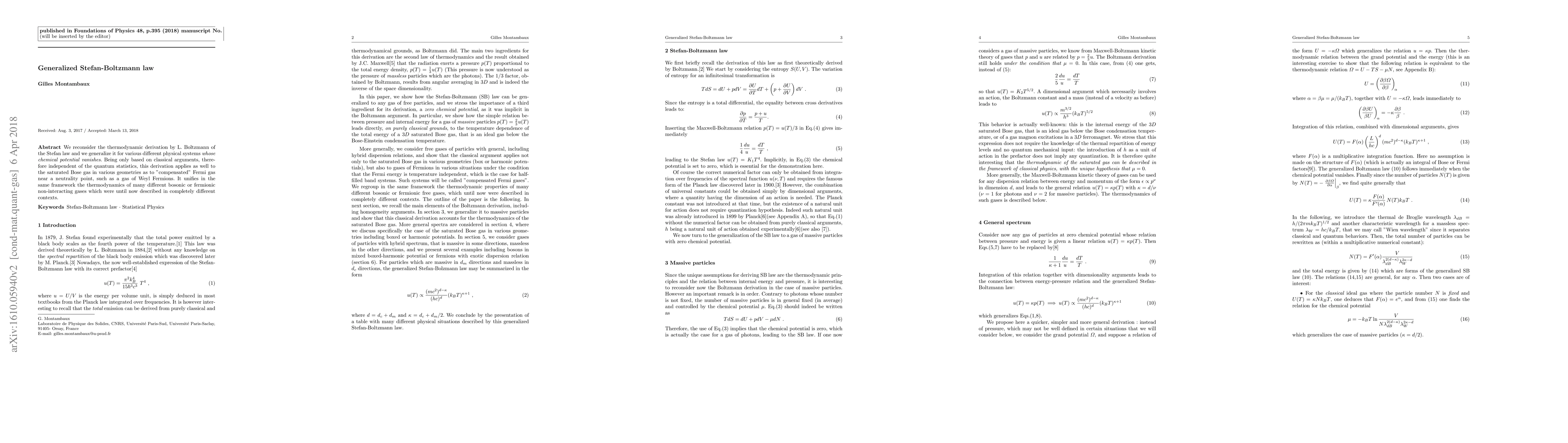 Researchers generalize the Stefan-Boltzmann law to include various physical systems with zero chemical potential, unifying thermodynamics of bosonic and fermionic non-interacting gases in a single framework.