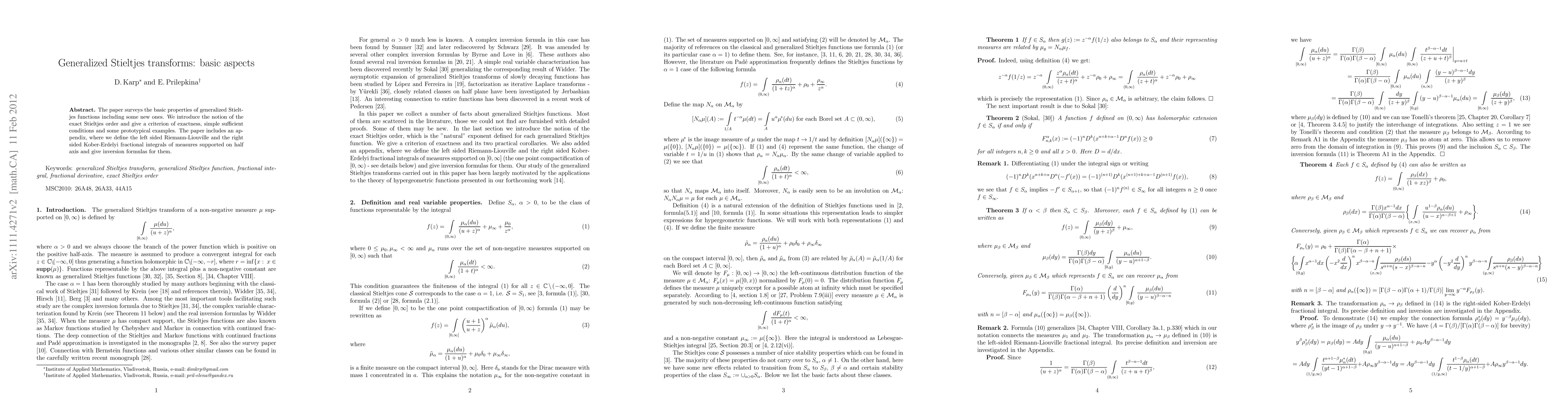 This paper surveys fundamental properties of generalized Stieltjes functions, introducing the concept of exact Stieltjes order and providing criteria, conditions, and examples. An appendix includes definitions and inversion formulas for left-sided Riemann-Liouville and right-sided Kober-Erdelyi fractional integrals.