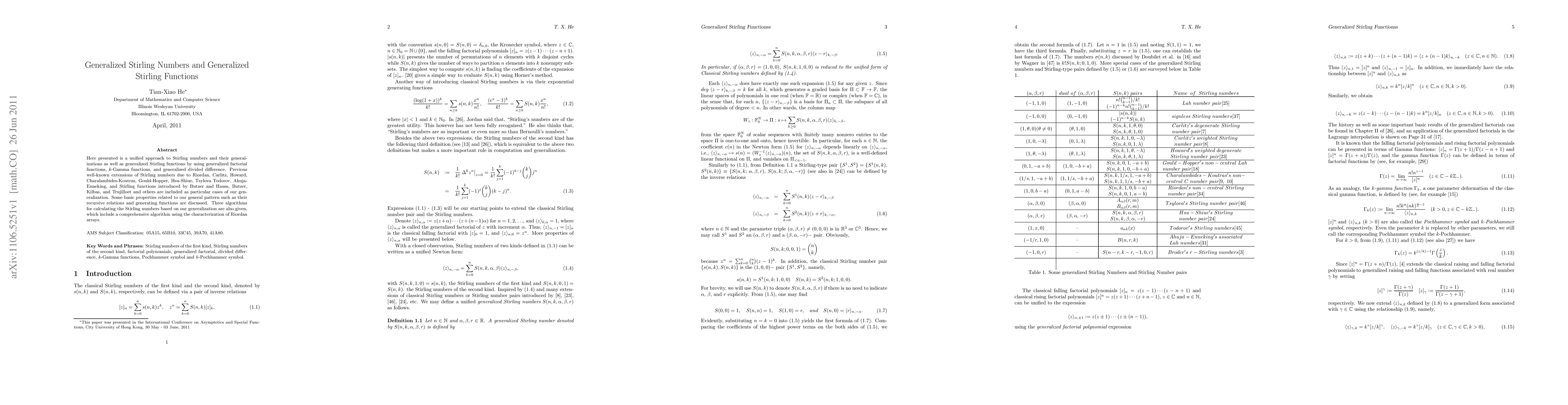 Here presented is a unified approach to Stirling numbers and their generalizations as well as generalized Stirling functions by using generalized factorial functions, $k$-Gamma functions, and generalized divided difference. Previous well-known extensions of Stirling numbers due to Riordan, Carlitz, Howard, Charalambides-Koutras, Gould-Hopper, Hsu-Shiue, Tsylova Todorov, Ahuja-Enneking, and Stirling functions introduced by Butzer and Hauss, Butzer, Kilbas, and Trujilloet and others are included as particular cases of our generalization. Some basic properties related to our general pattern such as their recursive relations and generating functions are discussed. Three algorithms for calculating the Stirling numbers based on our generalization are also given, which include a comprehensive algorithm using the characterization of Riordan arrays.