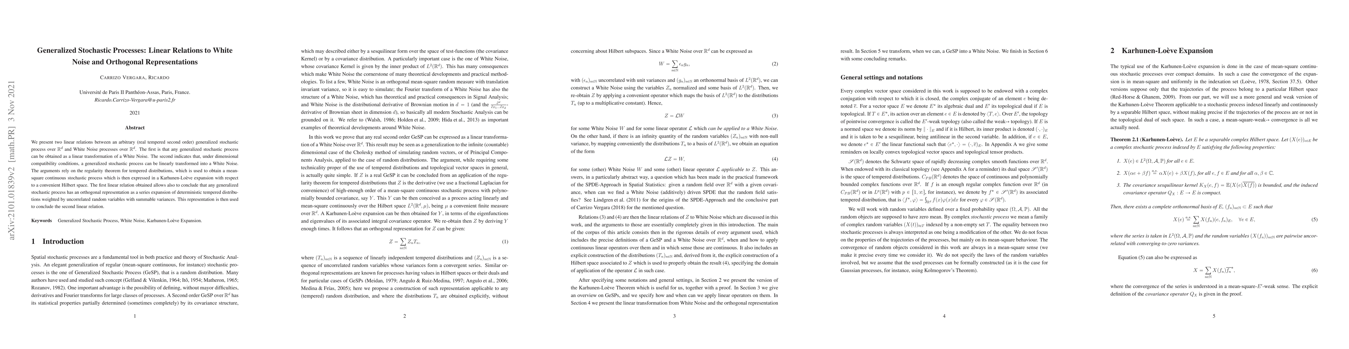 Researchers have found two key linear relations between generalized stochastic processes and White Noise processes, showing that any generalized process can be transformed into a White Noise or vice versa under certain conditions.