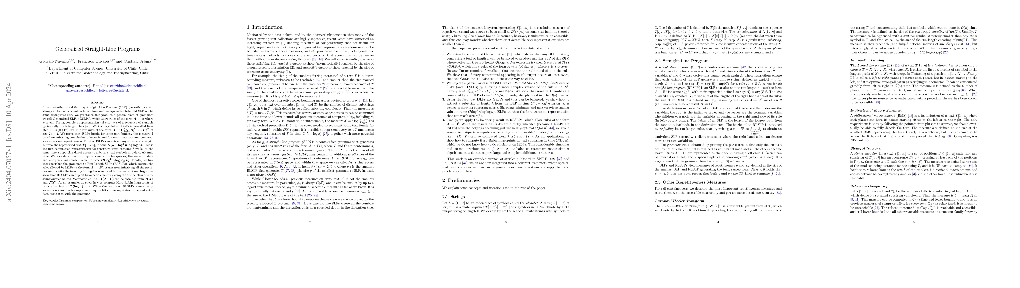 This paper generalizes Straight-Line Programs (SLPs) to Generalized SLPs (GSLPs) and Iterated SLPs (ISLPs), proving that ISLPs outperform existing measures in compressing repetitive texts. It also introduces Run-Length SLPs (RLSLPs), which improve access times for substring queries to near-optimal levels.