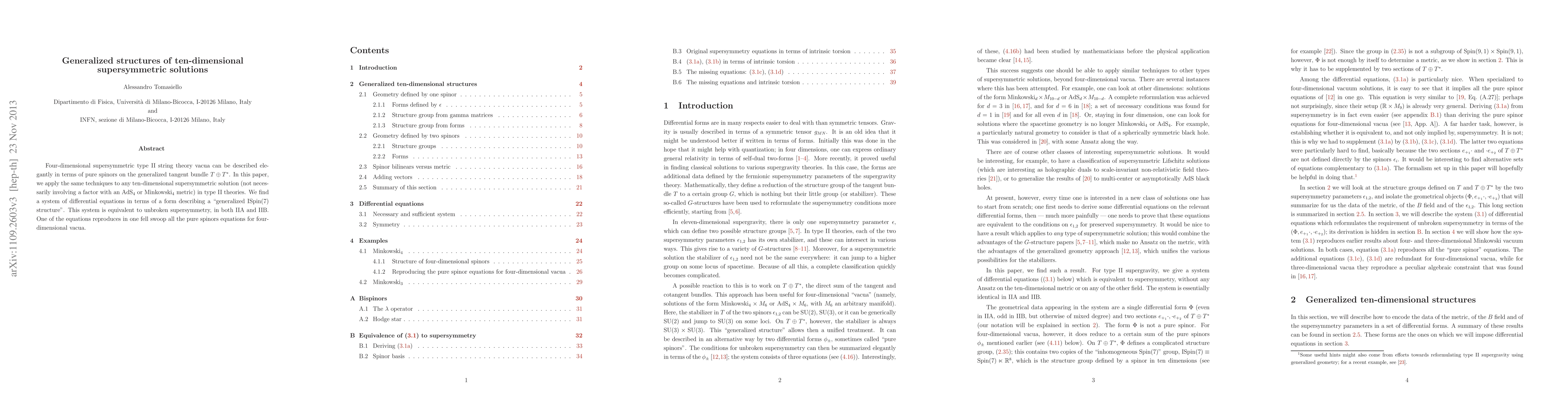 Four-dimensional supersymmetric type II string theory vacua can be described elegantly in terms of pure spinors on the generalized tangent bundle T+T*. In this paper, we apply the same techniques to any ten-dimensional supersymmetric solution (not necessarily involving a factor with an AdS4 or Minkowski4 metric) in type II theories. We find a system of differential equations in terms of a form describing a "generalized ISpin(7) structure". This system is equivalent to unbroken supersymmetry, in both IIA and IIB. One of the equations reproduces in one fell swoop all the pure spinors equations for four-dimensional vacua.