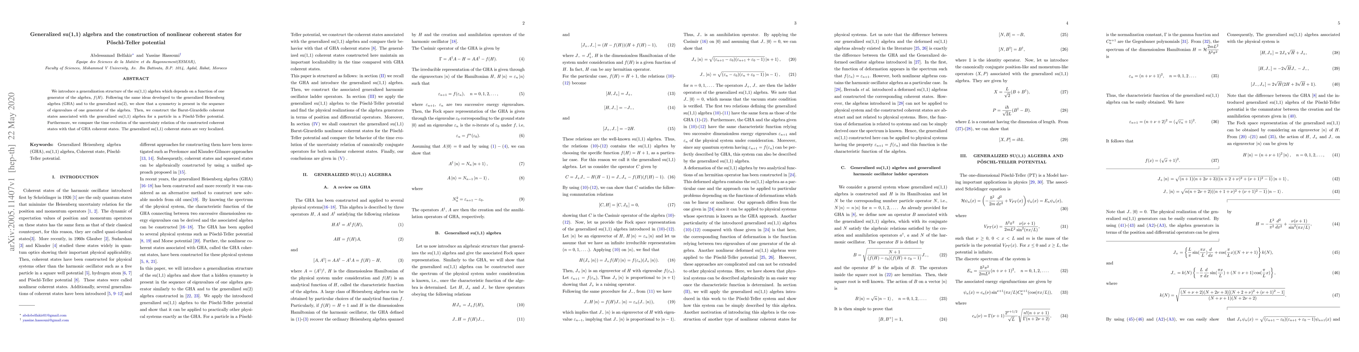 This paper generalizes the su(1,1) algebra and constructs nonlinear coherent states for particles in a P\"oschl-Teller potential, demonstrating a symmetry in the eigenvalue sequence. The Barut-Girardello coherent states derived exhibit strong localization and are compared with generalized Heisenberg algebra coherent states in terms of their time-evolving uncertainty relations.