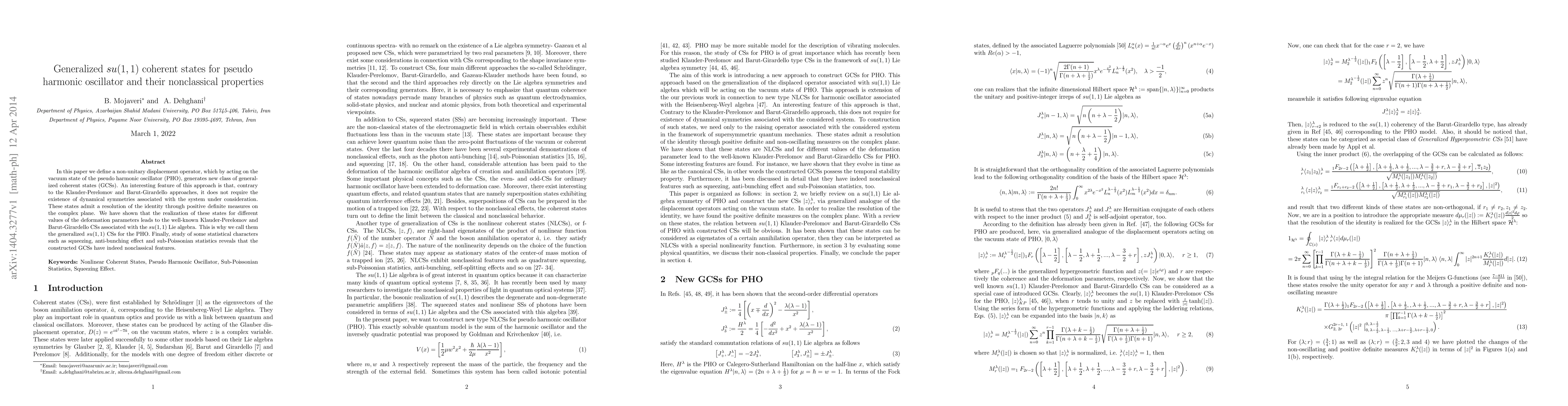 This paper introduces generalized coherent states for the pseudo harmonic oscillator using a non-unitary displacement operator, revealing nonclassical properties like squeezing and sub-Poissonian statistics, without requiring dynamical symmetries. These states extend traditional coherent states associated with the $su(1,1)$ algebra.