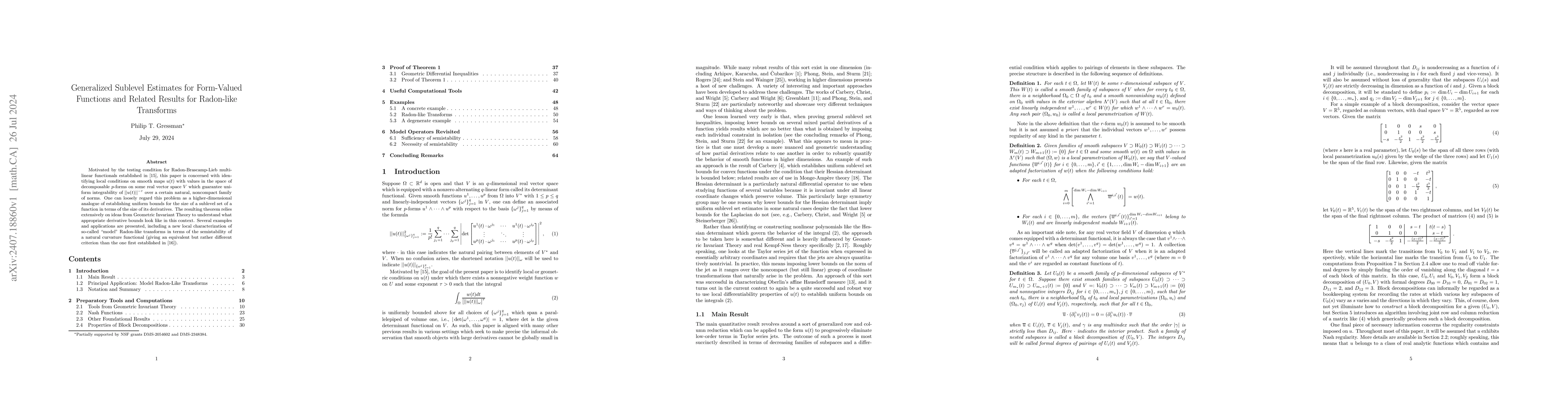 Motivated by the testing condition for Radon-Brascamp-Lieb multilinear functionals established in arXiv:2201.12201, this paper is concerned with identifying local conditions on smooth maps $u(t)$ with values in the space of decomposable p-forms on some real vector space V which guarantee uniform integrability of $||u(t)||^{-\tau}$ over a certain natural, noncompact family of norms. One can loosely regard this problem as a higher-dimensional analogue of establishing uniform bounds for the size of a sublevel set of a function in terms of the size of its derivatives. The resulting theorem relies extensively on ideas from Geometric Invariant Theory to understand what appropriate derivative bounds look like in this context. Several examples and applications are presented, including a new local characterization of so-called "model" Radon-like transforms in terms of the semistability of a natural curvature functional (giving an equivalent but rather different criterion than the one first established in arXiv:2303.03325).