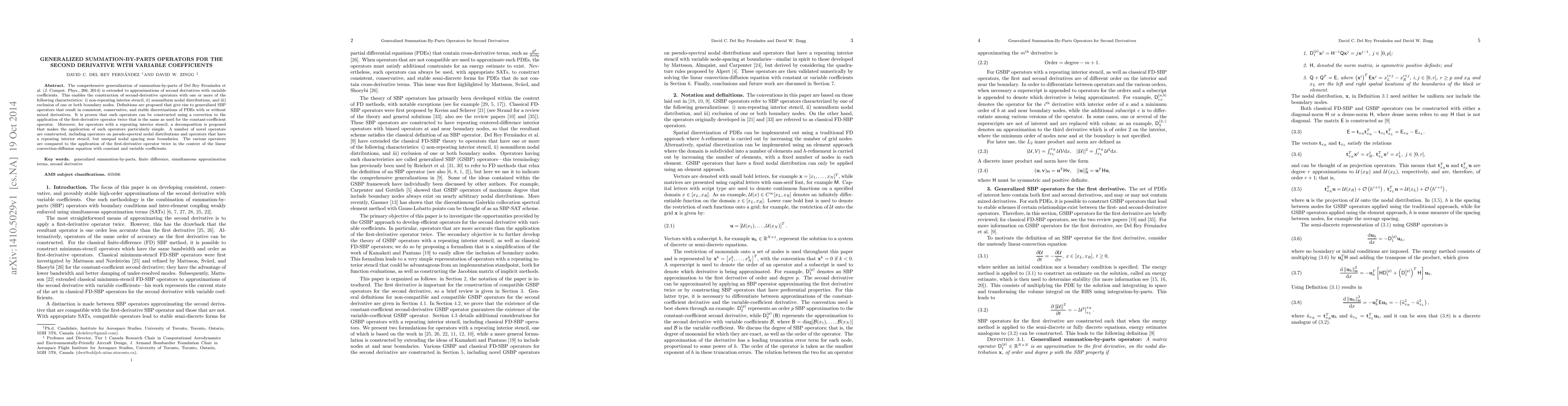 This paper extends the summation-by-parts method to second derivatives with variable coefficients, enabling the construction of non-uniform, non-repeating interior stencils, and stable operators that exclude boundary nodes. Novel operators are compared to traditional methods in the context of linear convection-diffusion equations.
